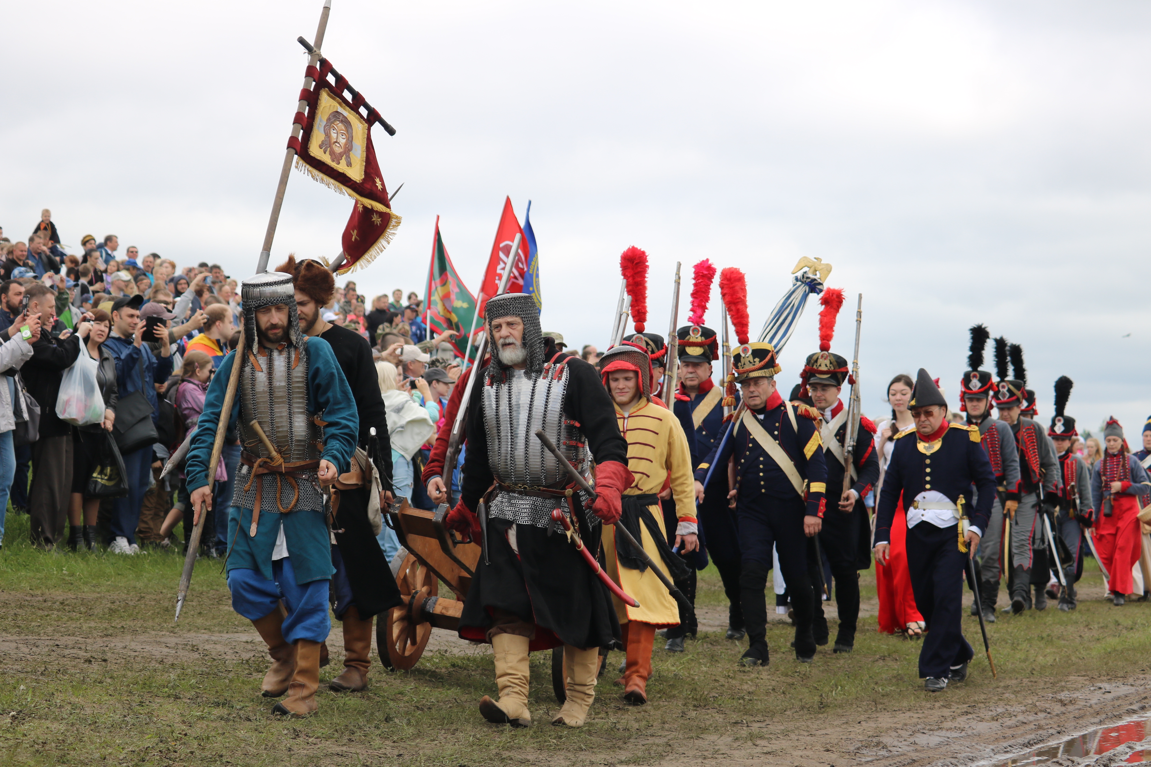 Мероприятие проходит сегодня в Колыванском районе Новосибирской области, в нём принимают участие более 500 членов клубов исторических реконструкторов из регионов Сибири, Урала, Дальнего Востока, республик Казахстан и Беларусь. В программе – реконструкция массовых сражений рыцарей средневековья, битв времён Отечественной войны 1812 года и Великой Отечественной войны 1941-1945 годов, показательное выступление, посвященное периоду боевых действий в Афганистане. В сценах задействованы десятки единиц военной и ретротехники, включая действующие макеты танков. Показательные выступления проходят при участии авиации.