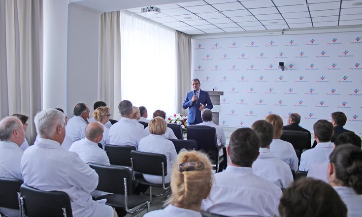 Сергей Меняйло поздравил сотрудников Дорожной клинической больницы с юбилеем медицинского учреждения и подчеркнул: «Очень важно, что вам удалось сохранить те замечательные традиции, которые закладывались вашими предшественниками на протяжении многих лет. Ваш колоссальный профессиональный опыт, преданность своему делу, а также ответственное отношение к жизни и здоровью пациентов, искренняя забота об их благополучии бесценны. Именно благодаря вам клиника растёт и развивается». Необходимо продолжать создавать возможности для дальнейшего развития, в первую очередь, привлекать к работе молодых высококвалифицированных специалистов, добавил полпред.