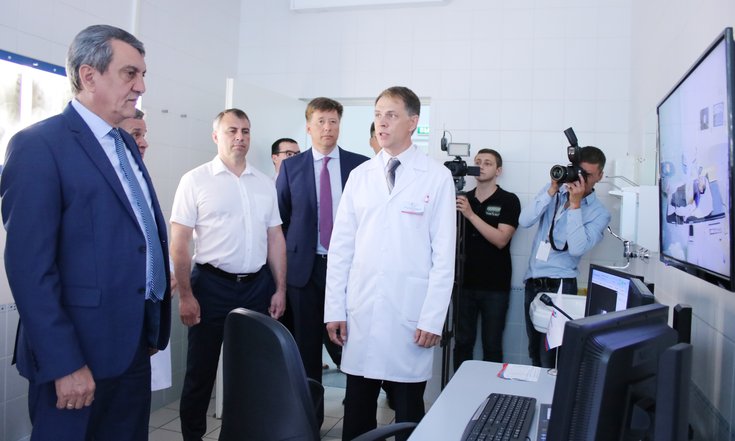 Полпреду были представлены основные подразделения медицинской организации: отделение магнитно-резонансной томографии, нейрохирургический центр, кабинеты рентгенохирургических методов лечения и дистанционной литотрипсии. Также в рамках посещения полномочным представителем клинической больницы состоялось открытие обновлённого томографического центра клиники, которое приурочено к 125-летию г. Новосибирска.