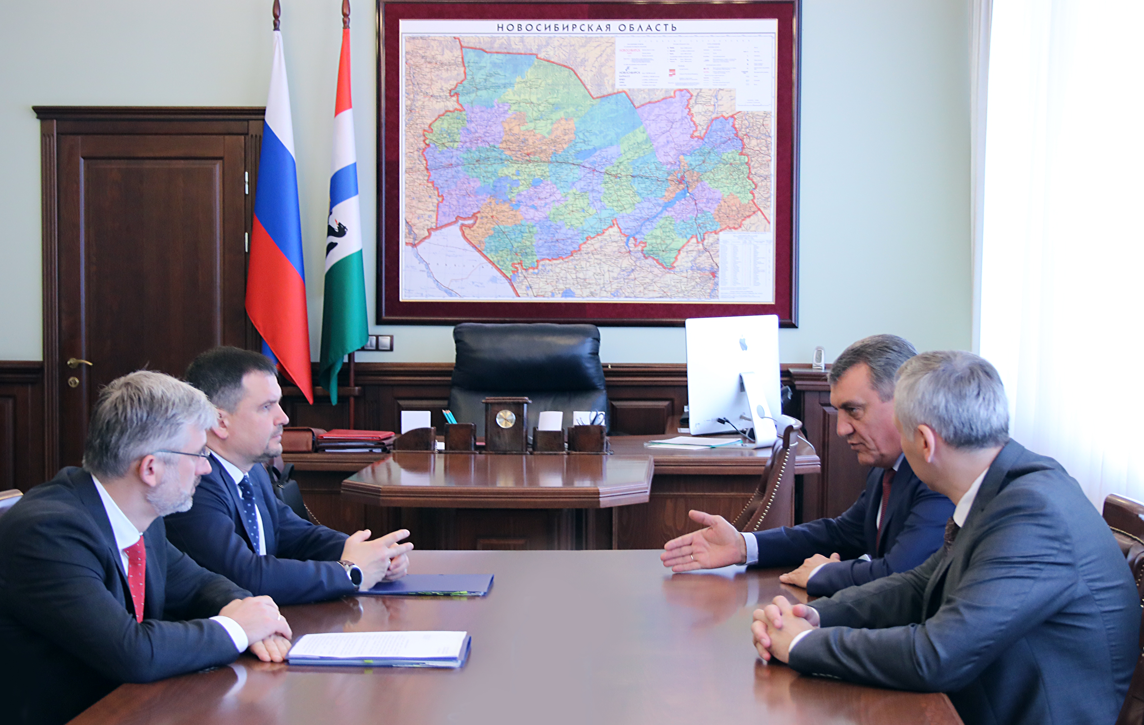 Также сегодня состоялась встреча полномочного представителя Президента Российской Федерации в Сибирском федеральном округе Сергея Меняйло, заместителя Председателя Правительства РФ Максима Акимова, Министра транспорта России Евгения Дитриха и временно исполняющего обязанности Губернатора Новосибирской области Андрея Травникова. В частности, обсуждались вопросы реализации крупных транспортных проектов на территории регионов Сибири.