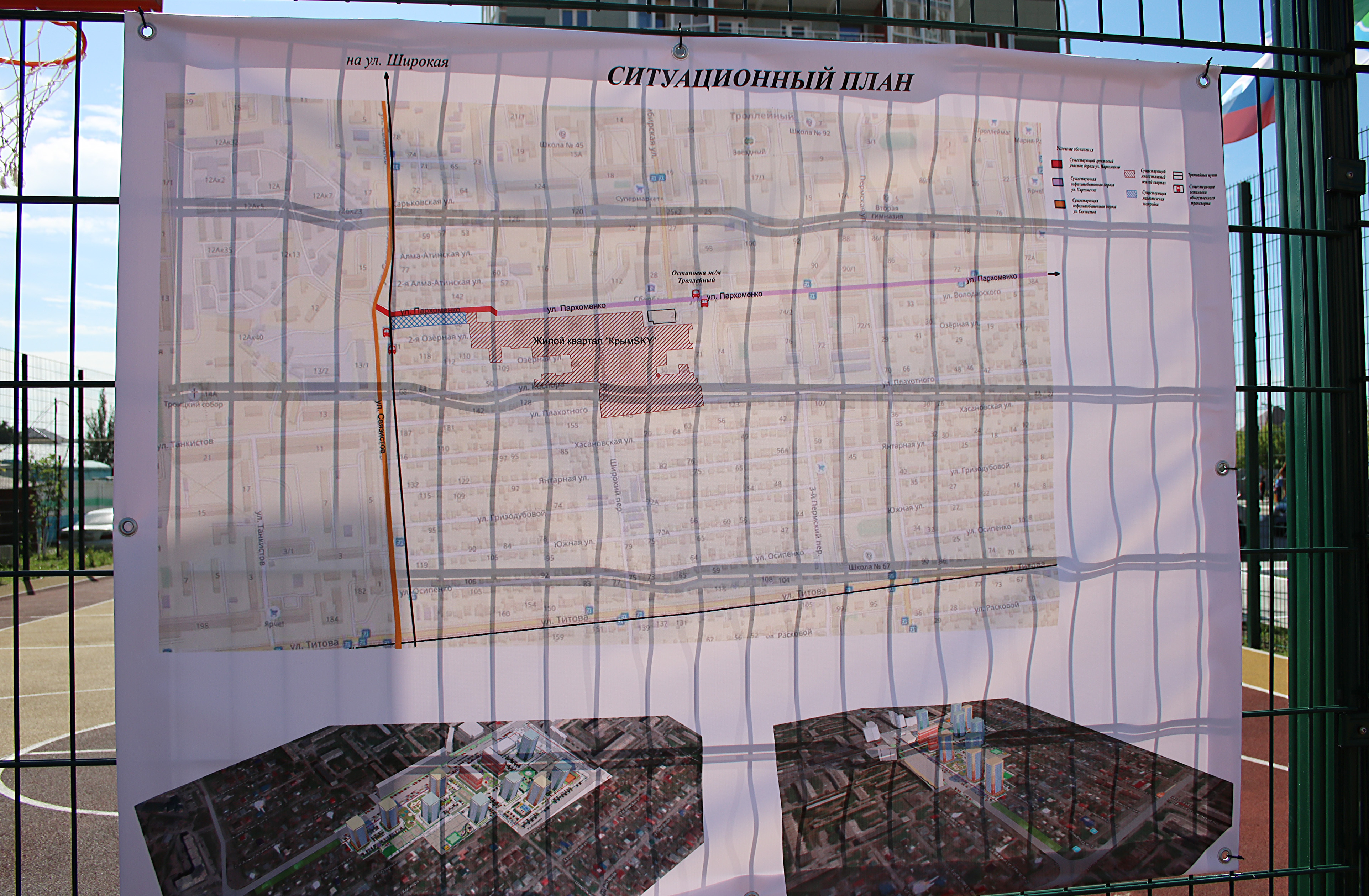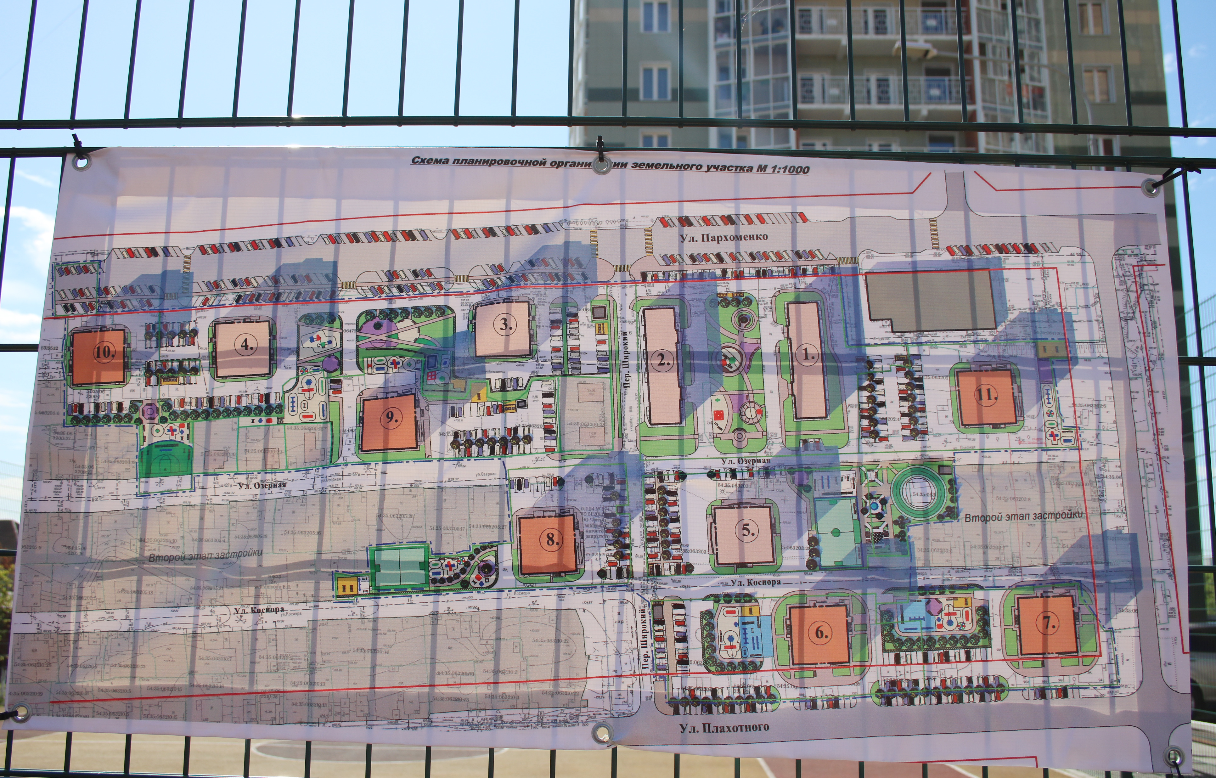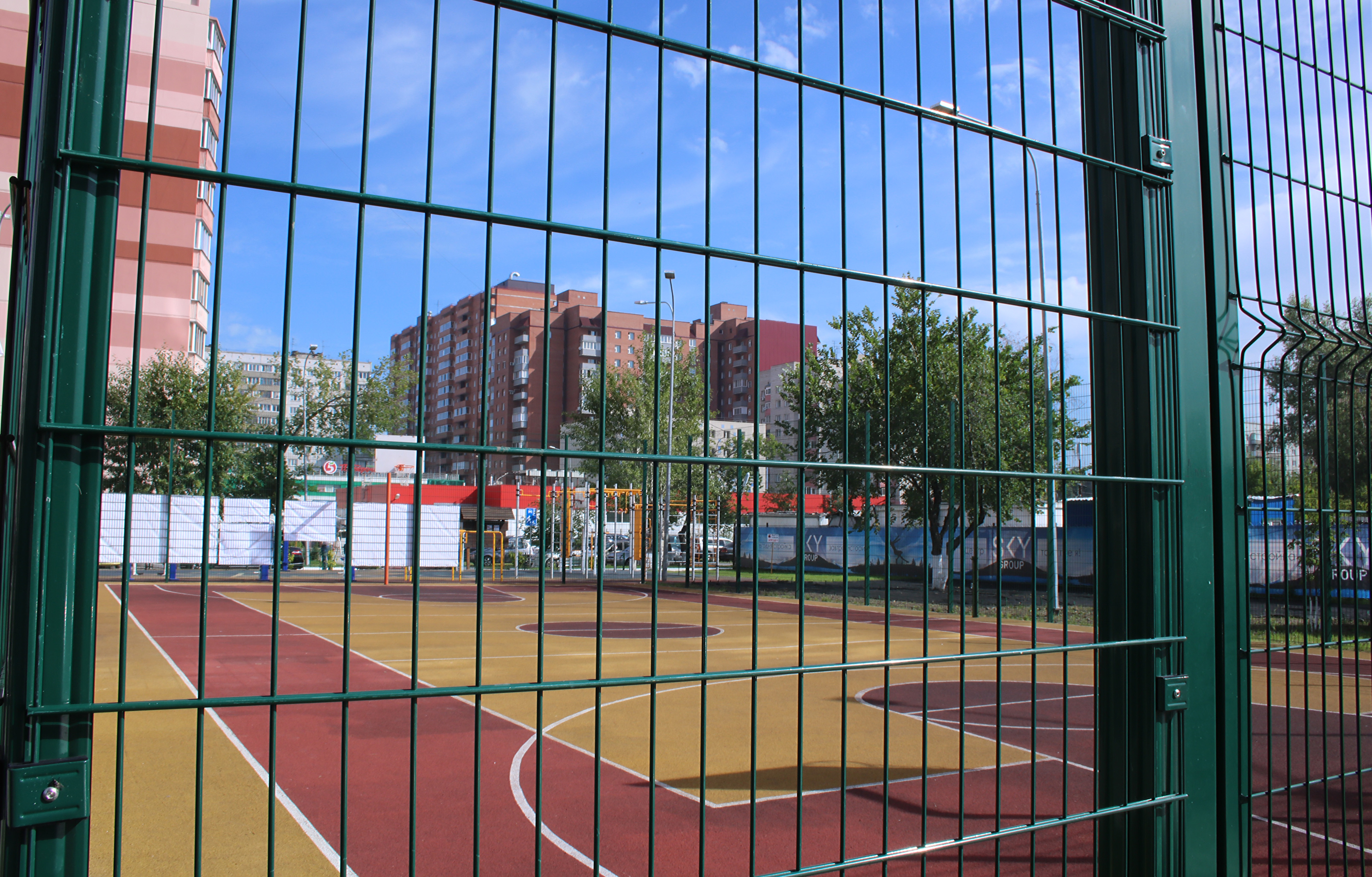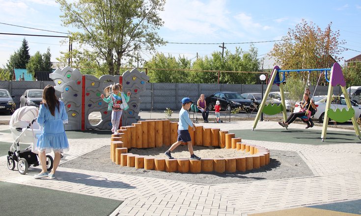 Кроме того, на территории жилого комплекса формируется парковая зона с пешеходными дорожками, артобъектами и скамейками для отдыха. Детские и спортивные площадки имеют специальное прорезиненное покрытие, установлены спортивные тренажеры, а также обустроены закрытая баскетбольная площадка и теннисный корт.