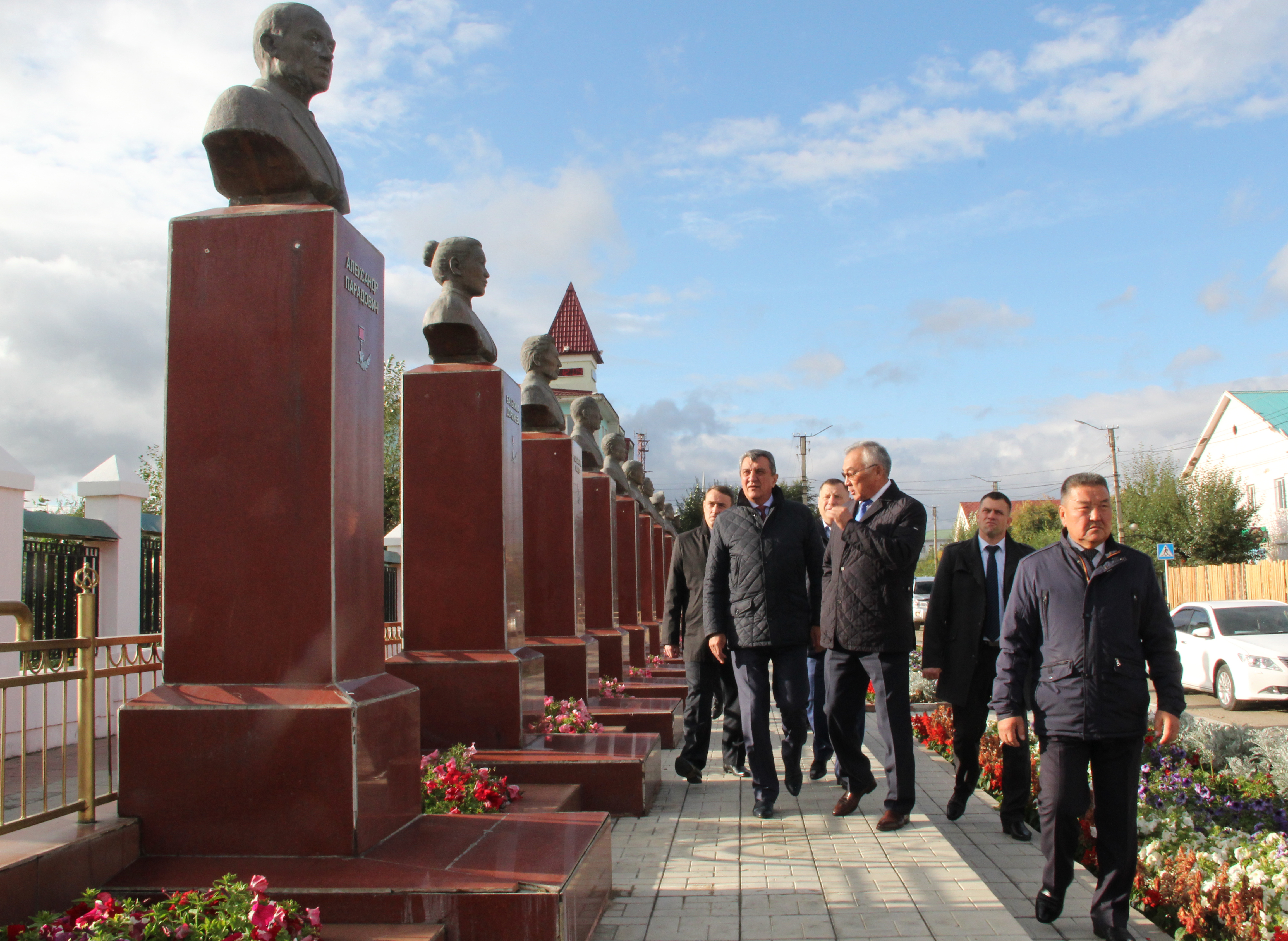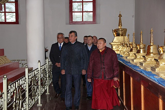 Также в Агинском полпред посетил Аллею Героев, где увековечены имена Героев Советского Союза, Героев Социалистического Труда, полных кавалеров орденов Трудовой Славы, Героев Российской Федерации и Героев Труда Российской Федерации, получивших высший знак отличия за ратные и трудовые подвиги в Великую Отечественную войну и мирное время. Сергей Меняйло побывал в Согчен дугане и храме Майдари Агинского дацана «Дэчен Лхундублинг». Памятник культуры федерального значения ведёт свою историю с 1811 года. В 2014 году комплекс пострадал от сильного пожара. К настоящему времени основные работы по его восстановлению завершены.