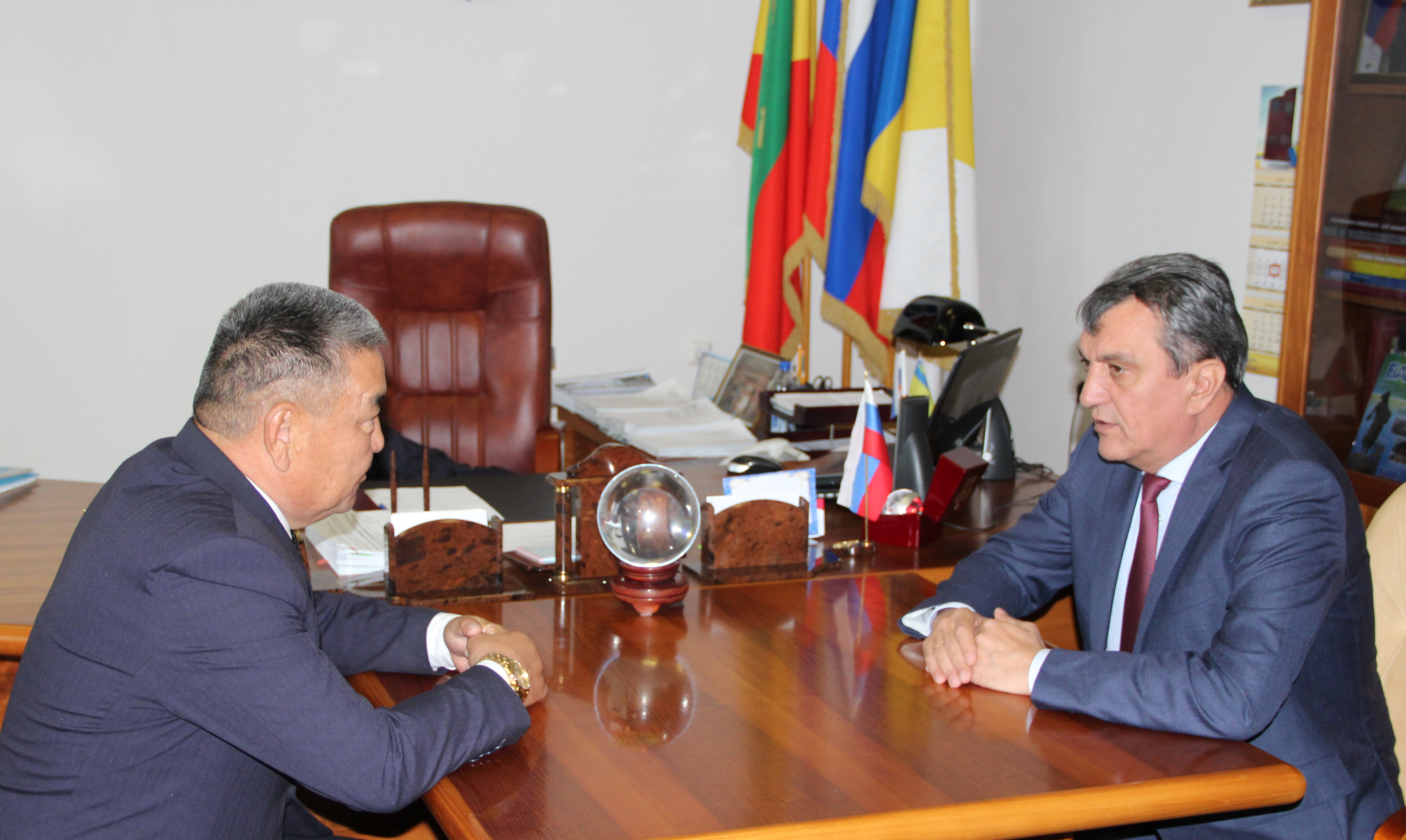 Полпред провёл рабочую встречу с заместителем председателя Комитета Совета Федерации по обороне и безопасности Федерального Собрания РФ Баиром Жамсуевым, заместителем Председателя комитета по обороне Государственной Думы РФ Юрием Швыткиным и заместителем председателя Правительства Забайкальского края – руководителем Администрации Агинского Бурятского округа Бато Доржиевым.