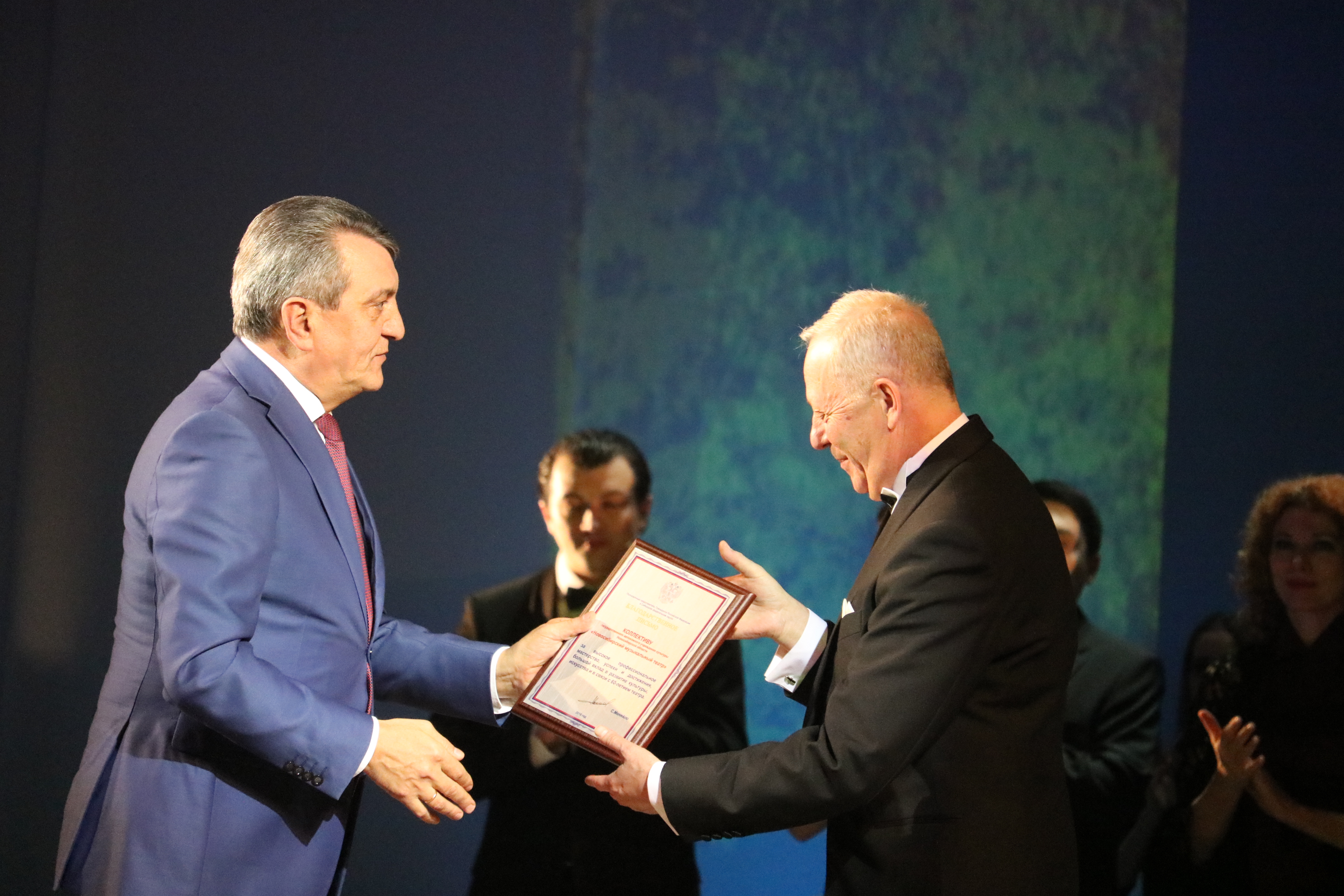 Полпред пожелал коллективу Новосибирского музыкального театра новых интересных спектаклей, больших творческих успехов и побед, и вручил благодарственное письмо «За высокое профессиональное мастерство, успехи и достижения, большой вклад в развитие культуры и искусства».