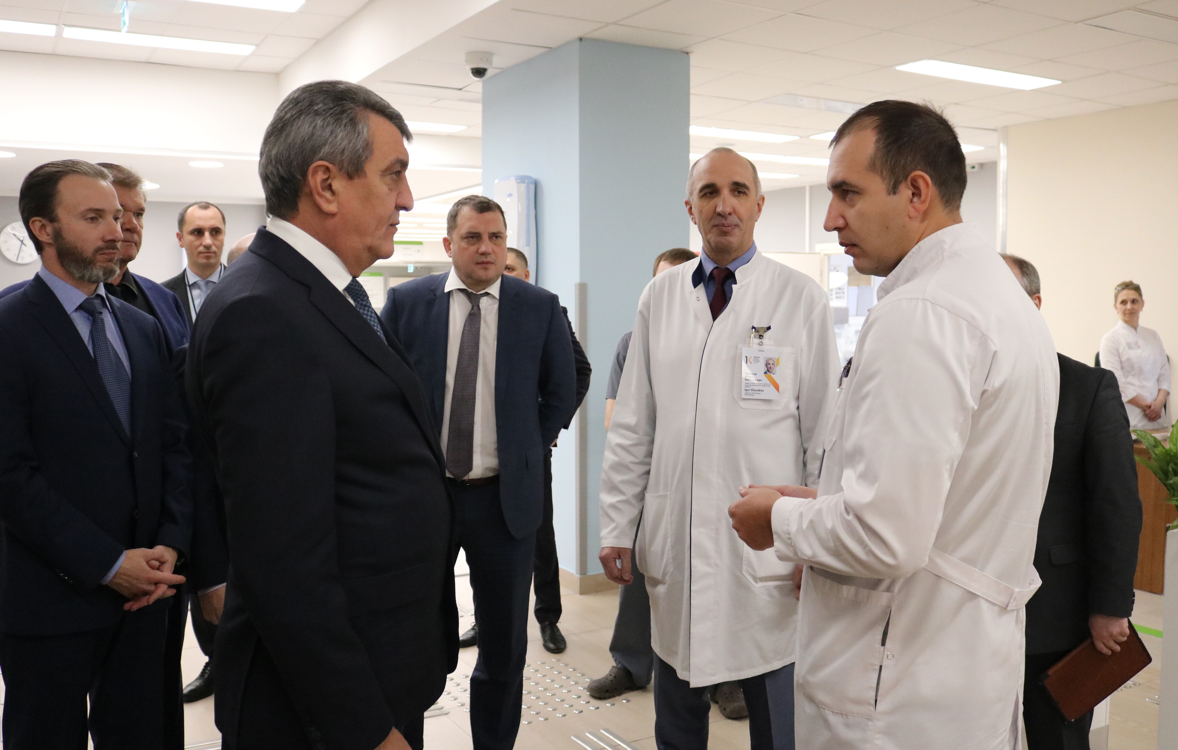Полпред отметил, что оборудование, установленное в новом корпусе, соответствует самым высоким требованиям современности, это позволяет оказывать уникальную, в том числе высокотехнологичную медицинскую помощь. «Важно, что в больнице выстроена система работы с пациентами – плановые и экстренные обращения разделены, чётко определены маршруты передвижения пациентов», – сказал полномочный представитель. При этом сегодня необходимо провести оценку работы такой системы в случае единовременного обращения большого числа граждан, уделить дополнительное внимание сокращению времени ожидания, добавил он.