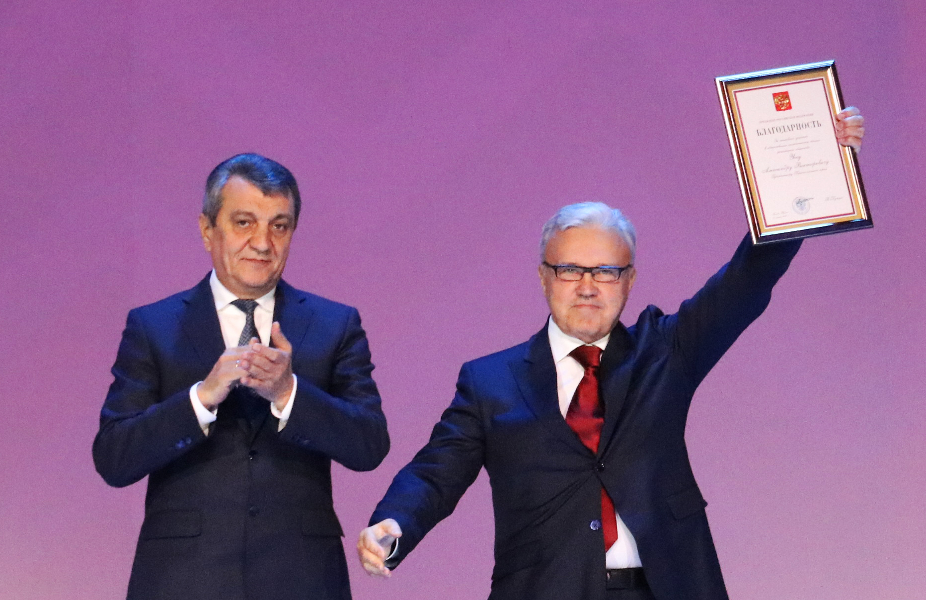 Полномочный представитель вручил Благодарность Президента Российской Федерации губернатору Красноярского края Александру Уссу, а также государственные награды Российской Федерации выдающимся жителям Красноярского края.