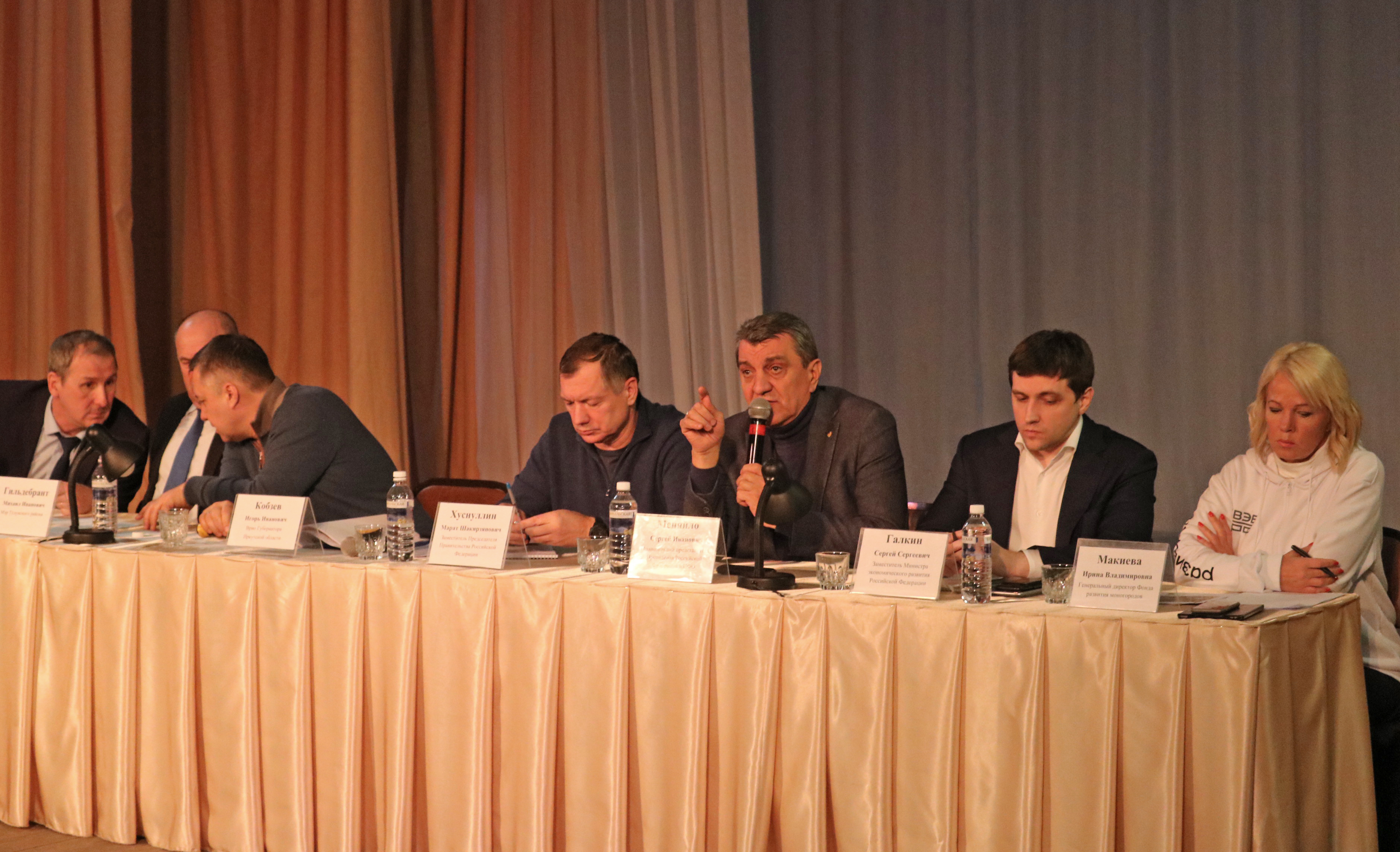Полпред главы государства, заместитель Председателя Правительства РФ, временно исполняющий обязанности губернатора Иркутской области, генеральный директор Фонда развития моногородов, руководители органов местного самоуправления встретились с предпринимателями Тулуна. Среди вопросов, которые были рассмотрены, – возможности обеспечения выгодных условий кредитования, механизмы работы на территории опережающего социально-экономического развития, которая была создана в Тулуне, меры поддержки сельхозпроизводителей.