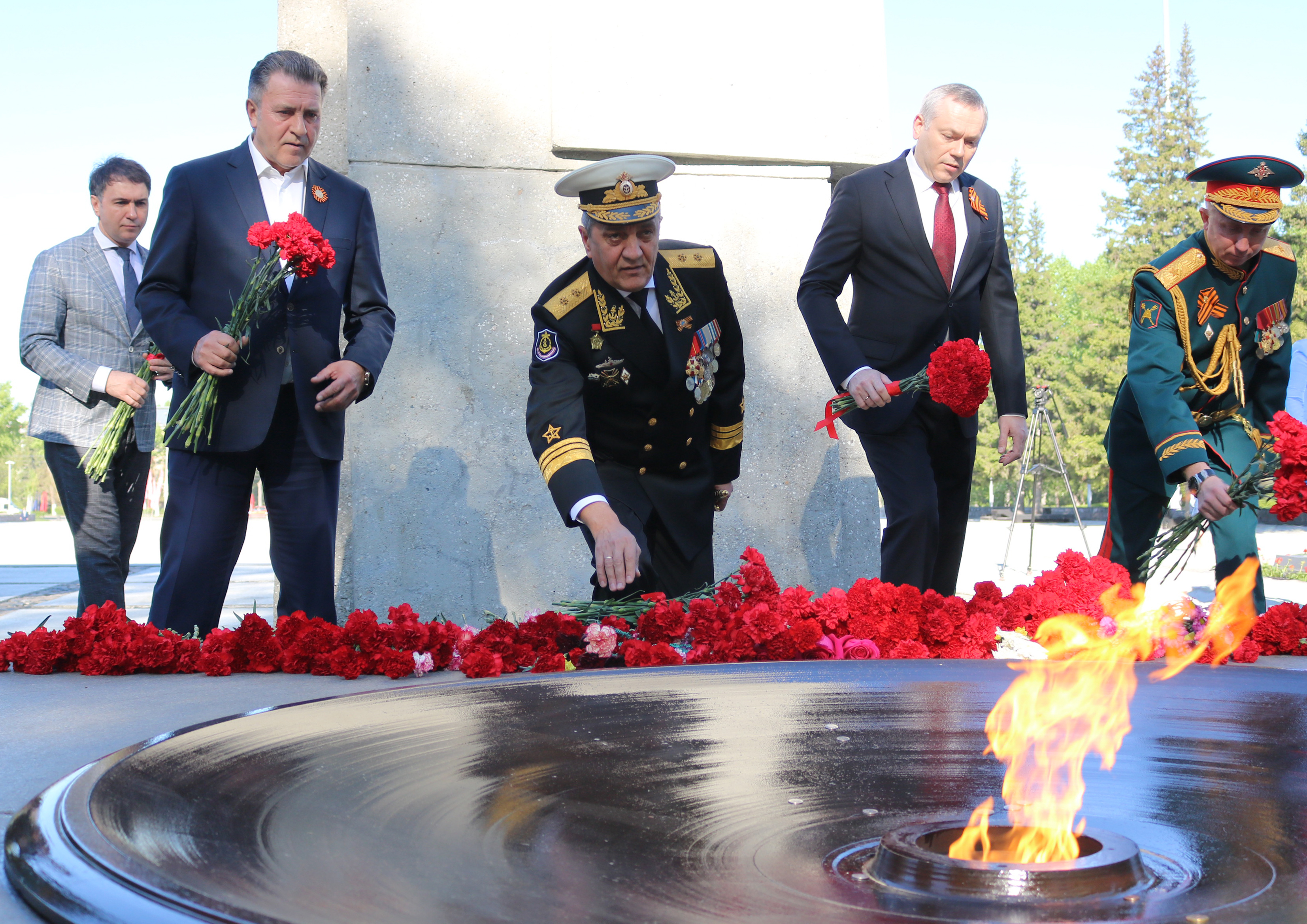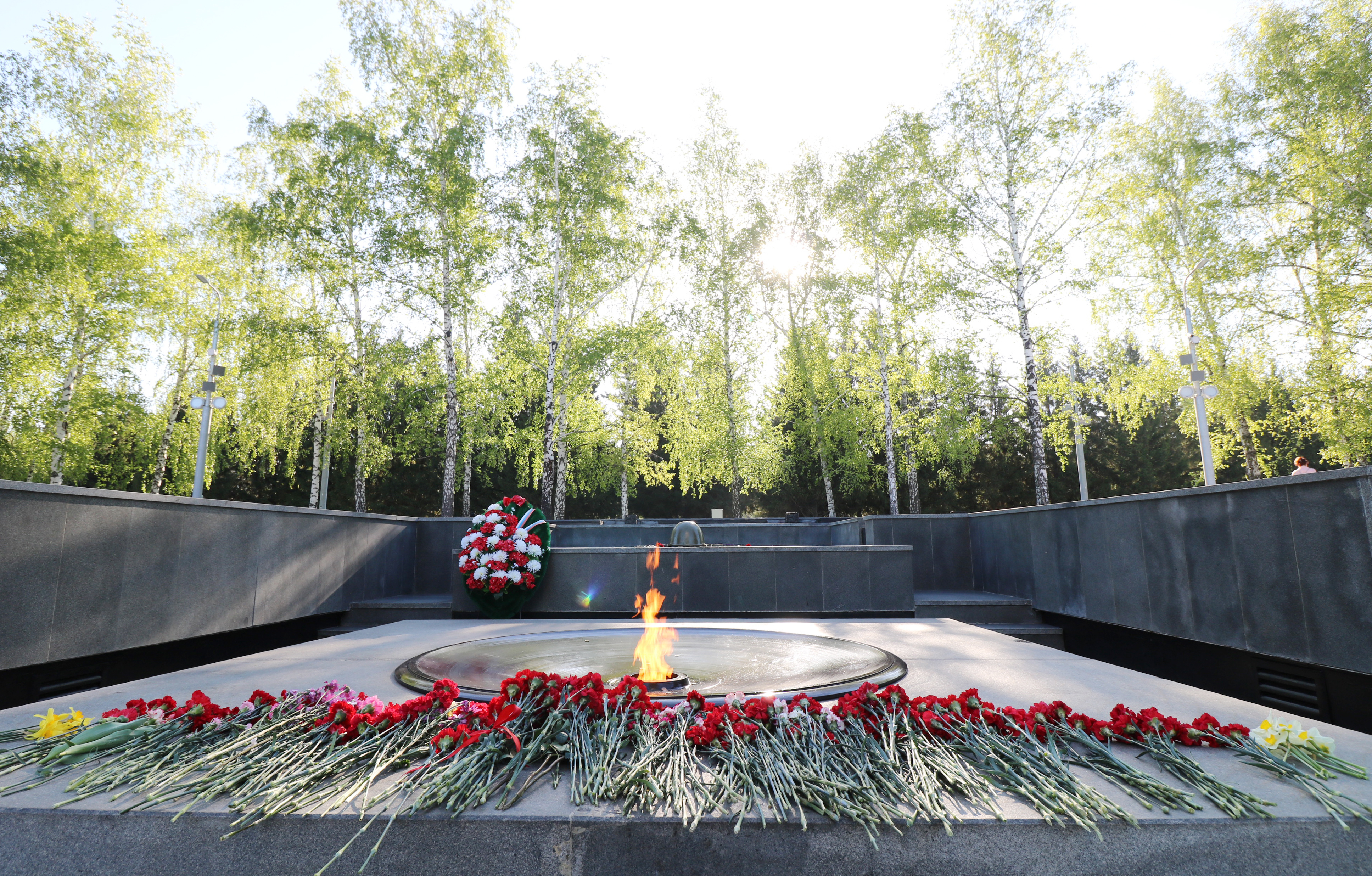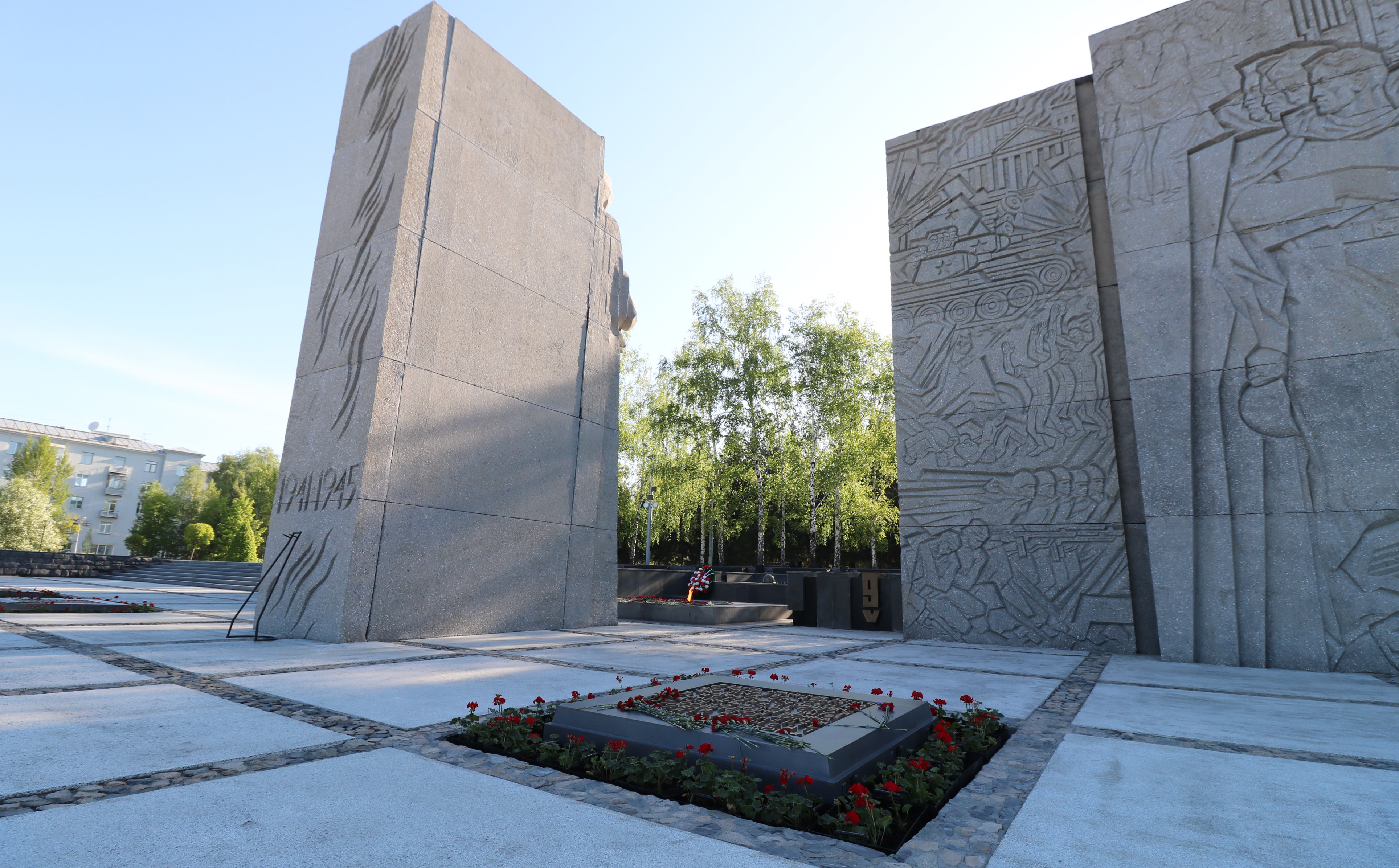 В г. Новосибирске при подготовке к празднованию 75-летия Победы в рамках федерального приоритетного проекта «Формирование комфортной городской среды» была проведена комплексная реконструкция на мемориальном комплексе «Монумент Славы» – отремонтированы пилоны, подпорные стенки, постаменты, обновлены системы звукового обеспечения и освещения. В сквере у мемориального комплекса обновлены покрытия, лестничные спуски и пандусы, проведены монтаж светильников, озеленение территории и установлены малые архитектурные формы.