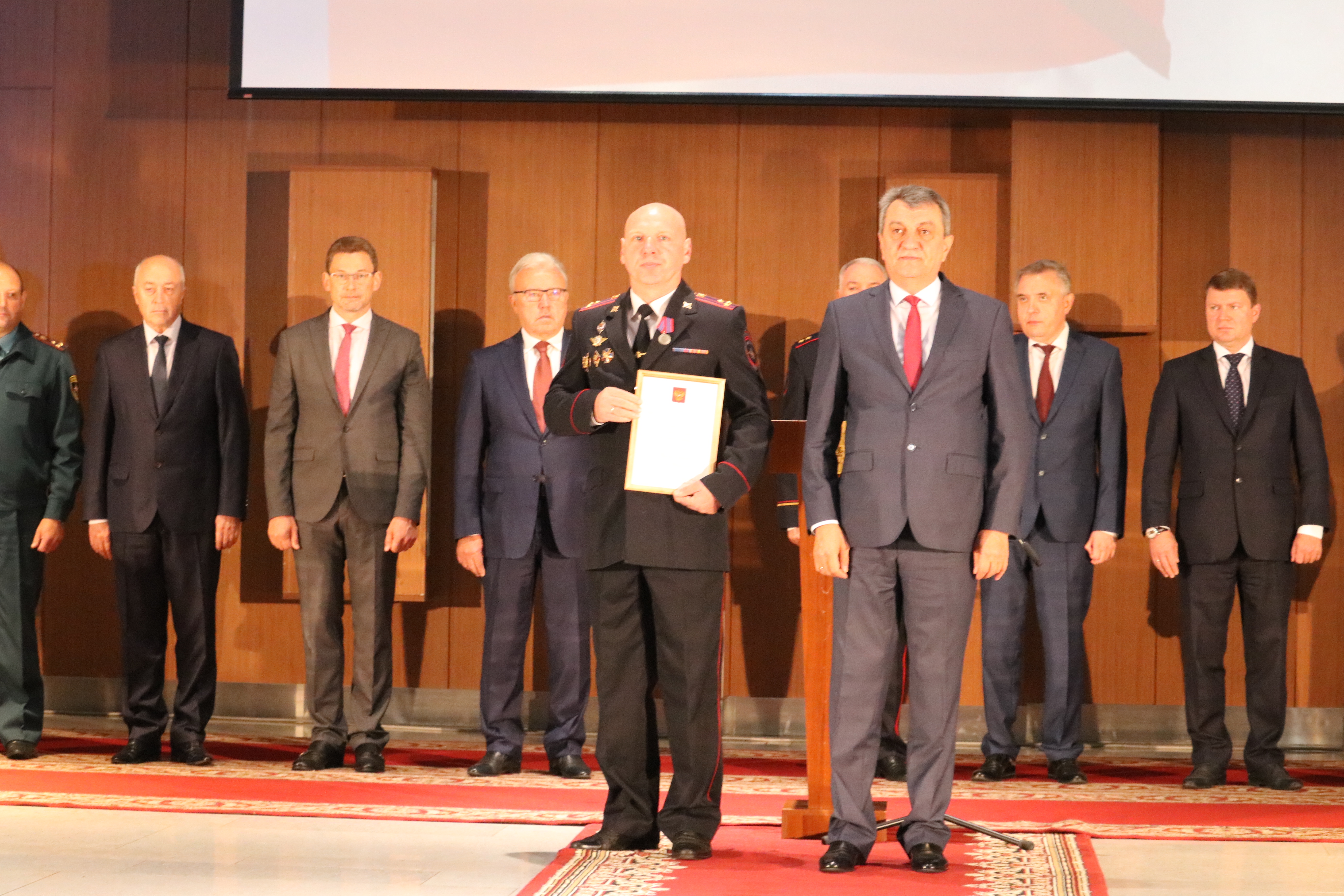 Сергей Меняйло поздравил сотрудников Главного управления МВД по Красноярскому краю с заслуженными наградами. «Уверен, вы и в дальнейшем будете обеспечивать охрану правопорядка на высочайшем профессиональном уровне», – сказал полномочный представитель.