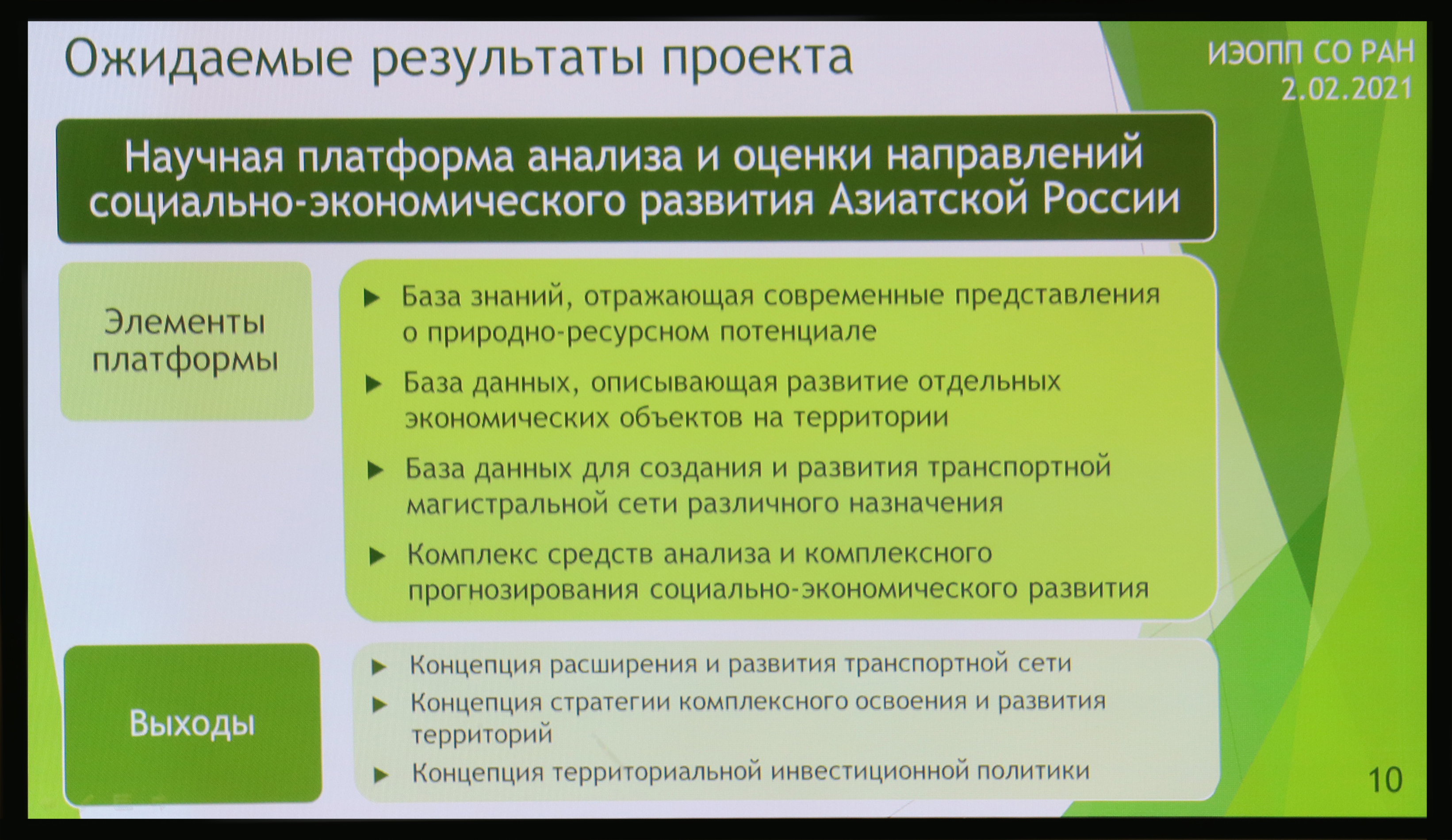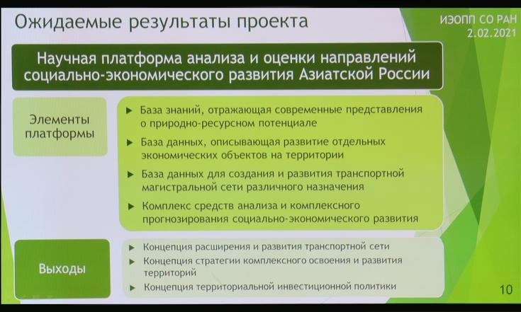 Проект направлен на создание базы знаний и данных о природно-ресурсном потенциале Азиатской России и отдельных его подсистем, о развитии отдельных экономических объектов на территории, как с точки зрения современного состояния, так и перспективных направлений развития, о расширении и развитии транспортной сети. А также разработка концепции стратегии комплексного освоения и развития территорий Азиатской России и концепции территориальной инвестиционной политики, призванной обеспечить устойчивый экономический рост и повышение благосостояния населения территорий Азиатской России.