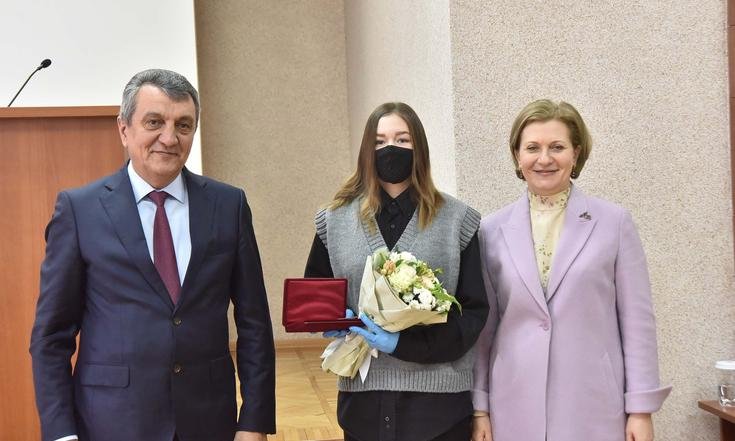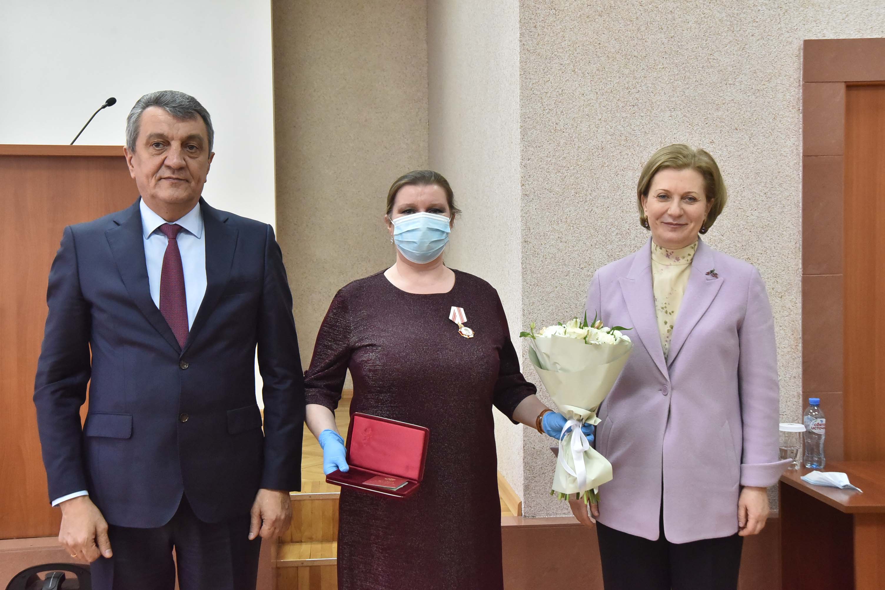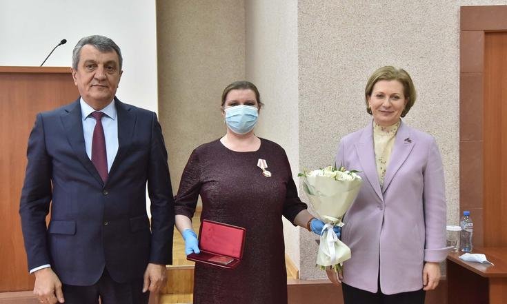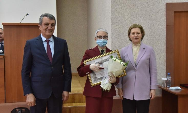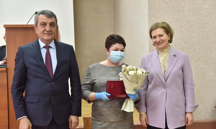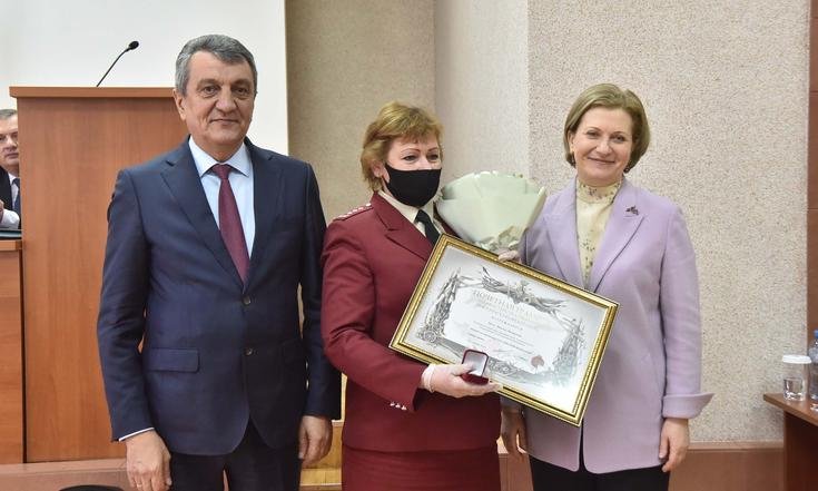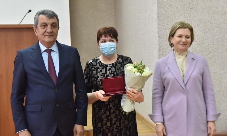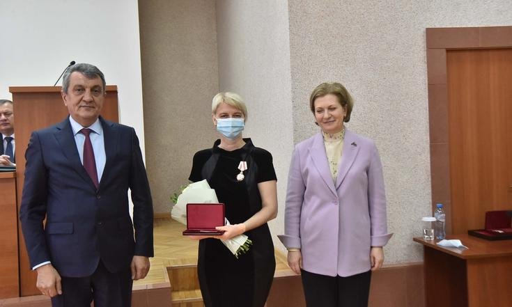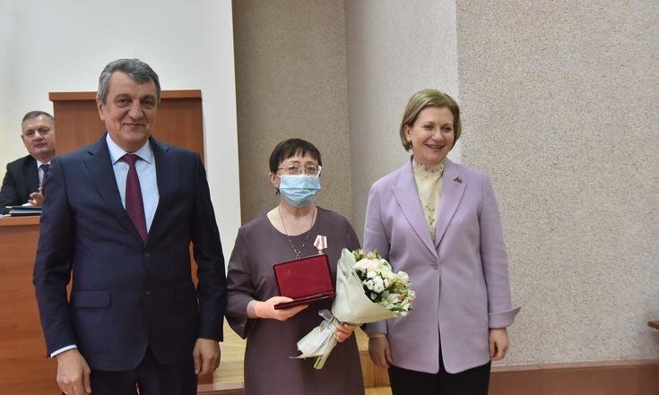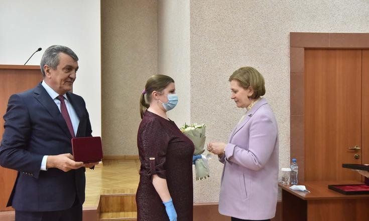 Анна Попова и Сергей Меняйло вручили государственные награды за большой вклад в борьбу с коронавирусной инфекцией, самоотверженность и высокий профессионализм лучшим сотрудникам управления и подведомственных Роспотребнадзору учреждений Новосибирской области.