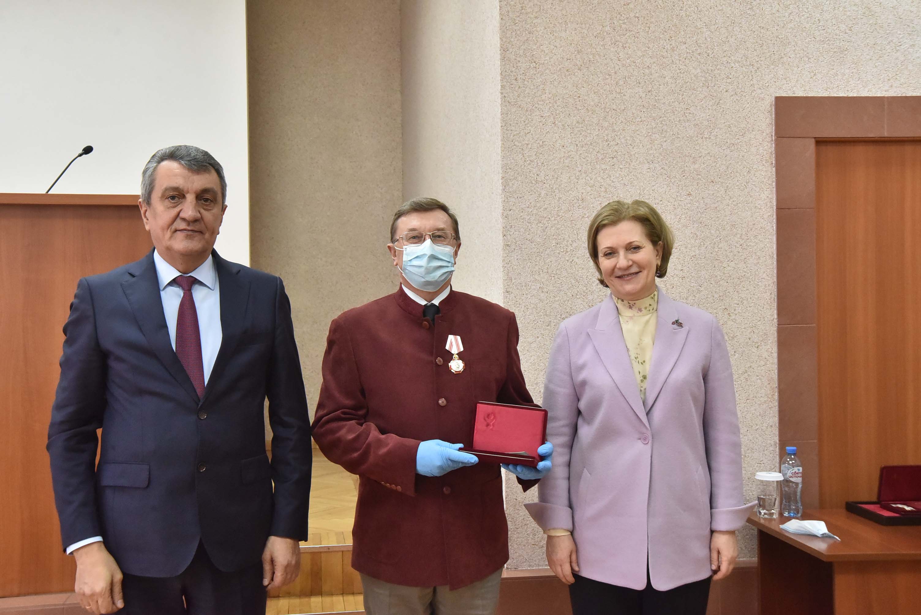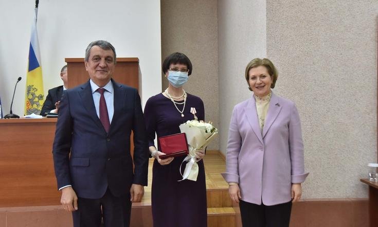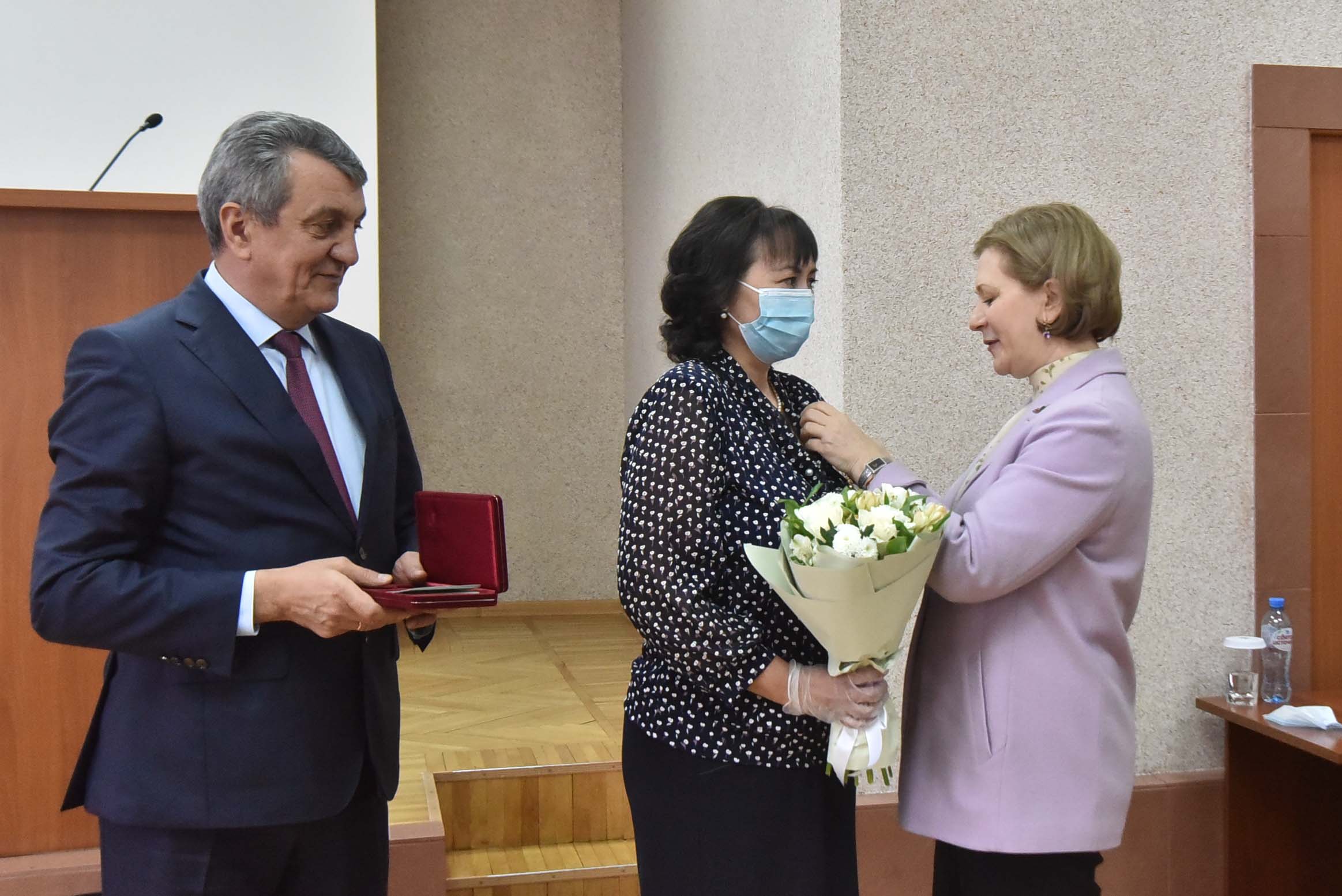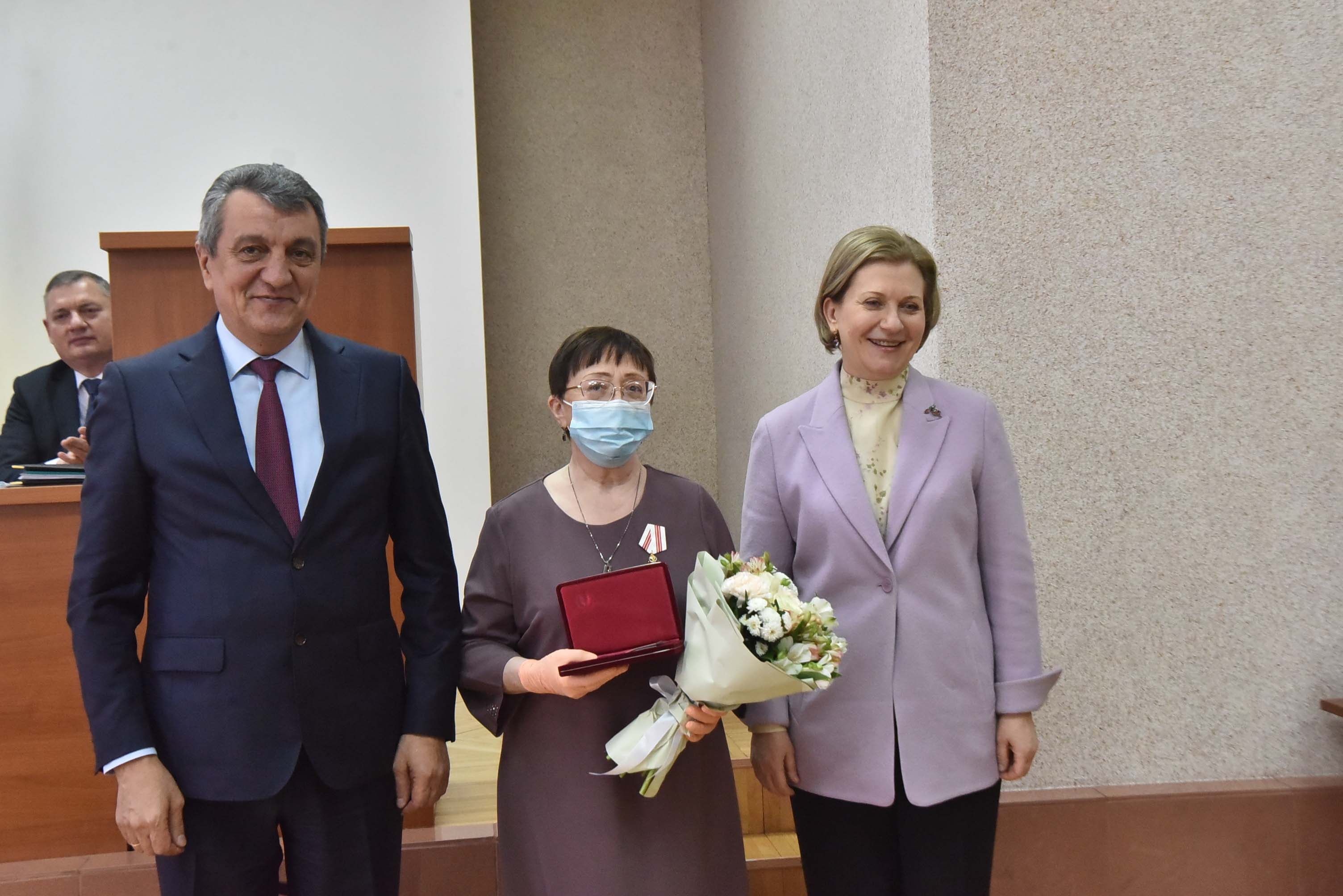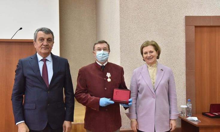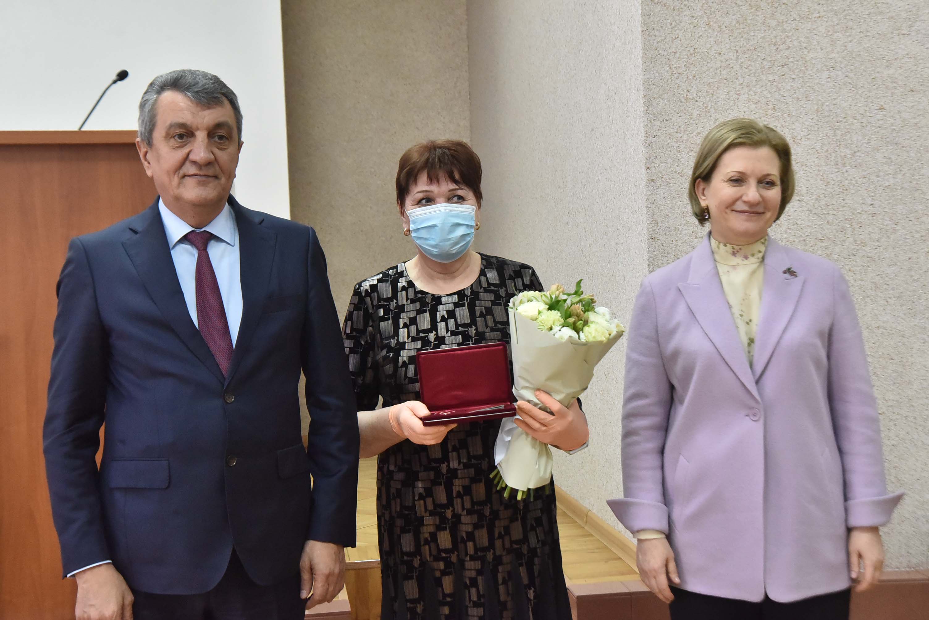 Анна Попова и Сергей Меняйло вручили государственные награды за большой вклад в борьбу с коронавирусной инфекцией, самоотверженность и высокий профессионализм лучшим сотрудникам управления и подведомственных Роспотребнадзору учреждений Новосибирской области.