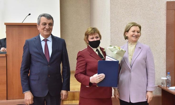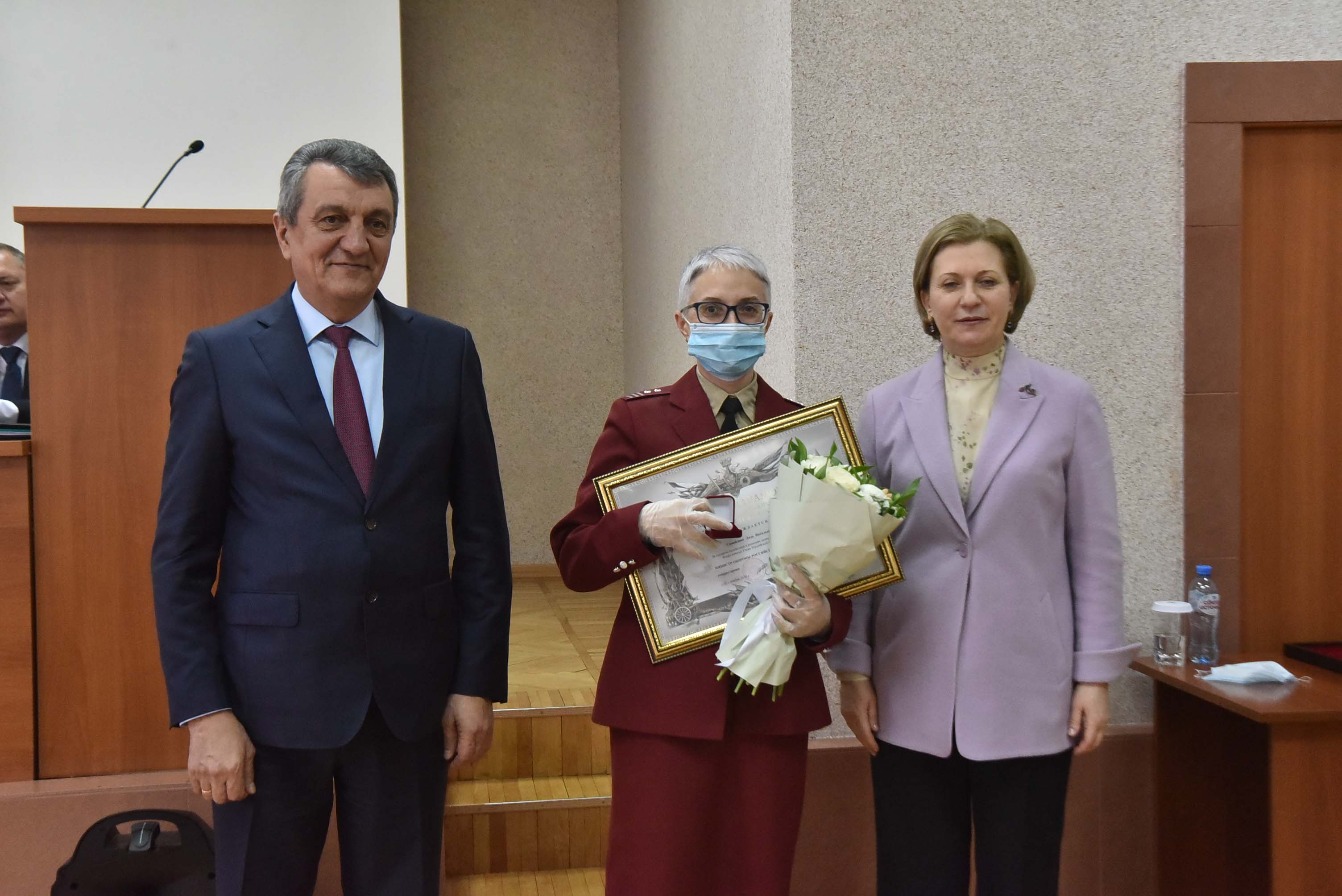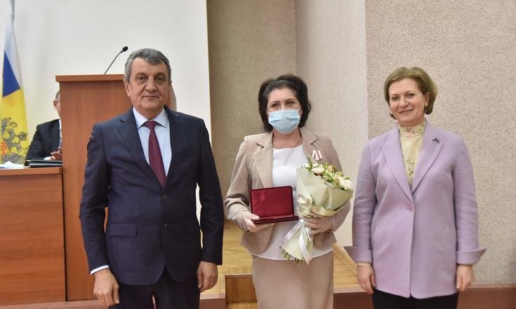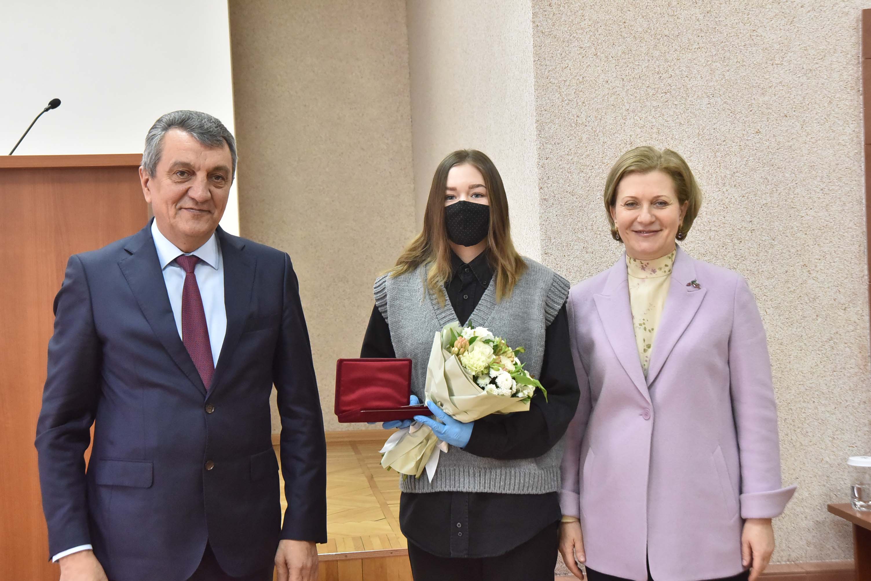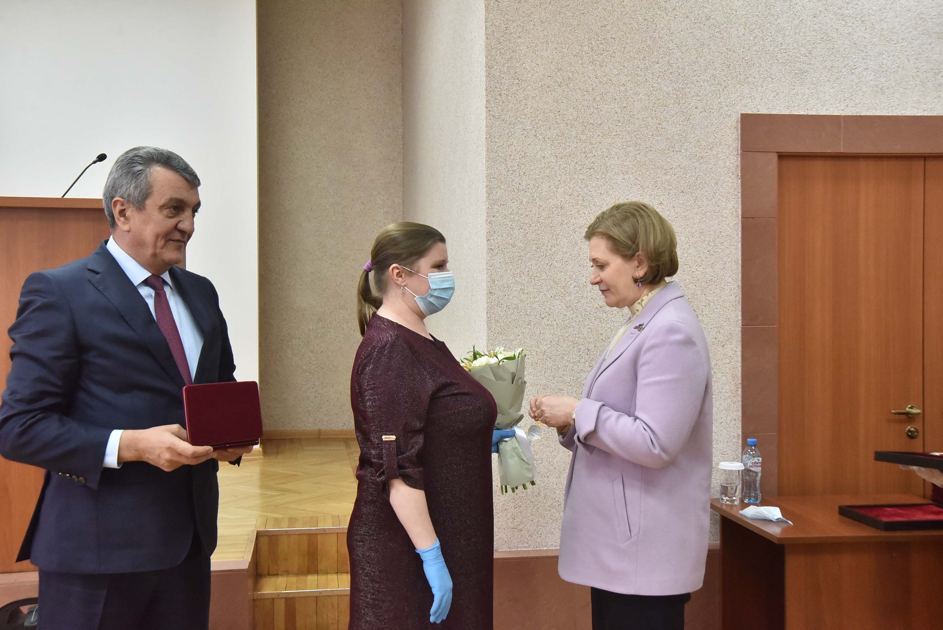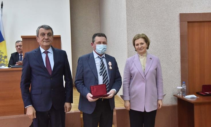 Анна Попова и Сергей Меняйло вручили государственные награды за большой вклад в борьбу с коронавирусной инфекцией, самоотверженность и высокий профессионализм лучшим сотрудникам управления и подведомственных Роспотребнадзору учреждений Новосибирской области.