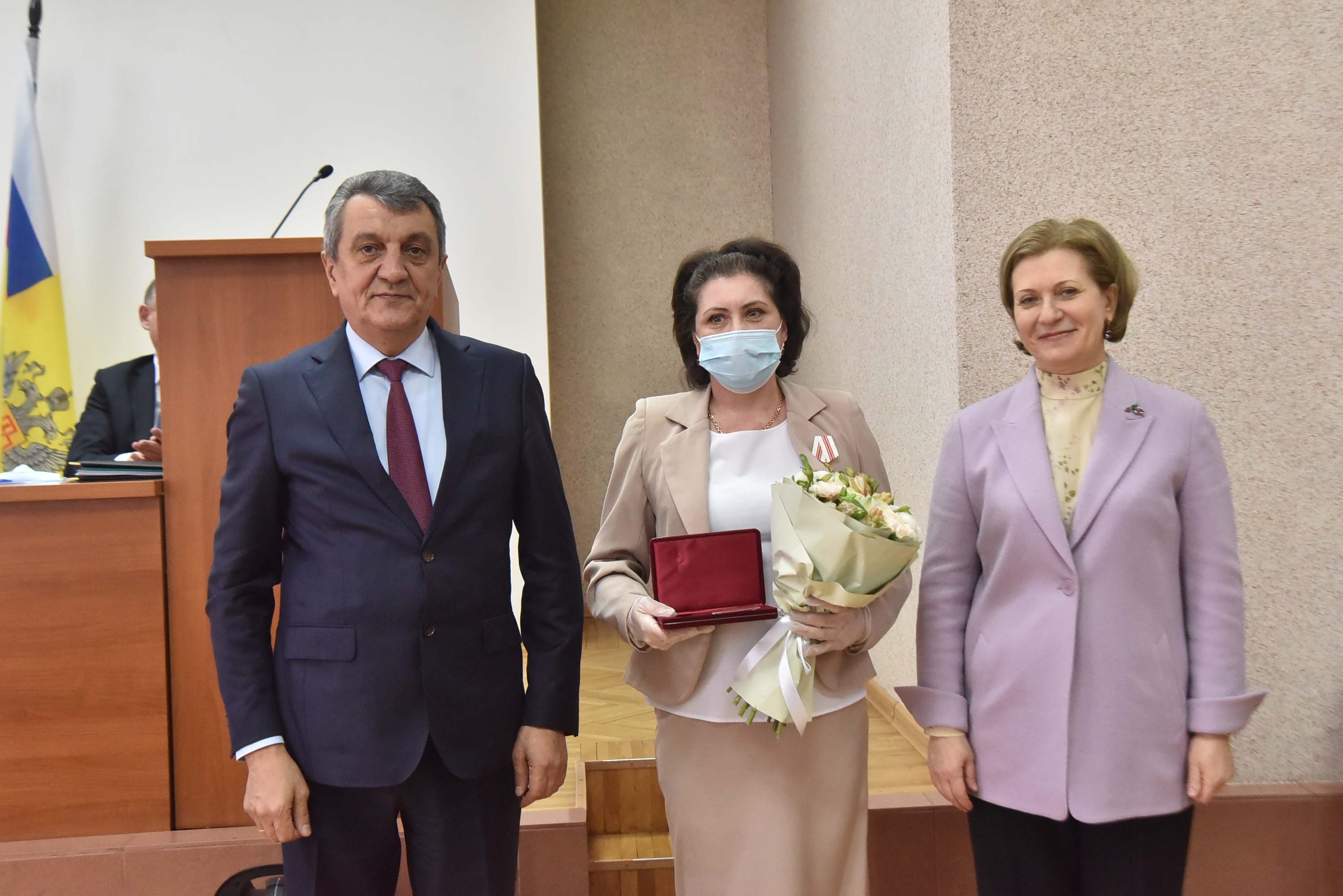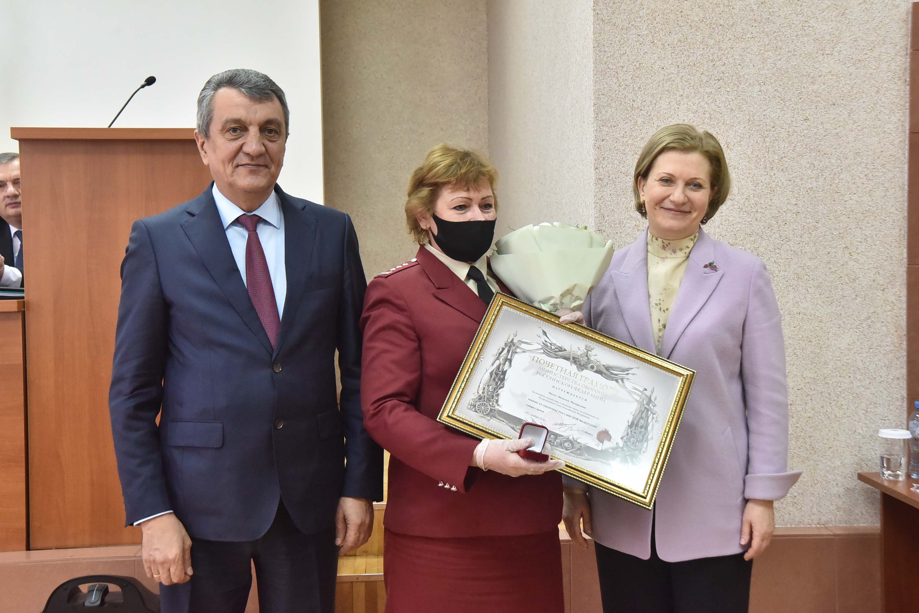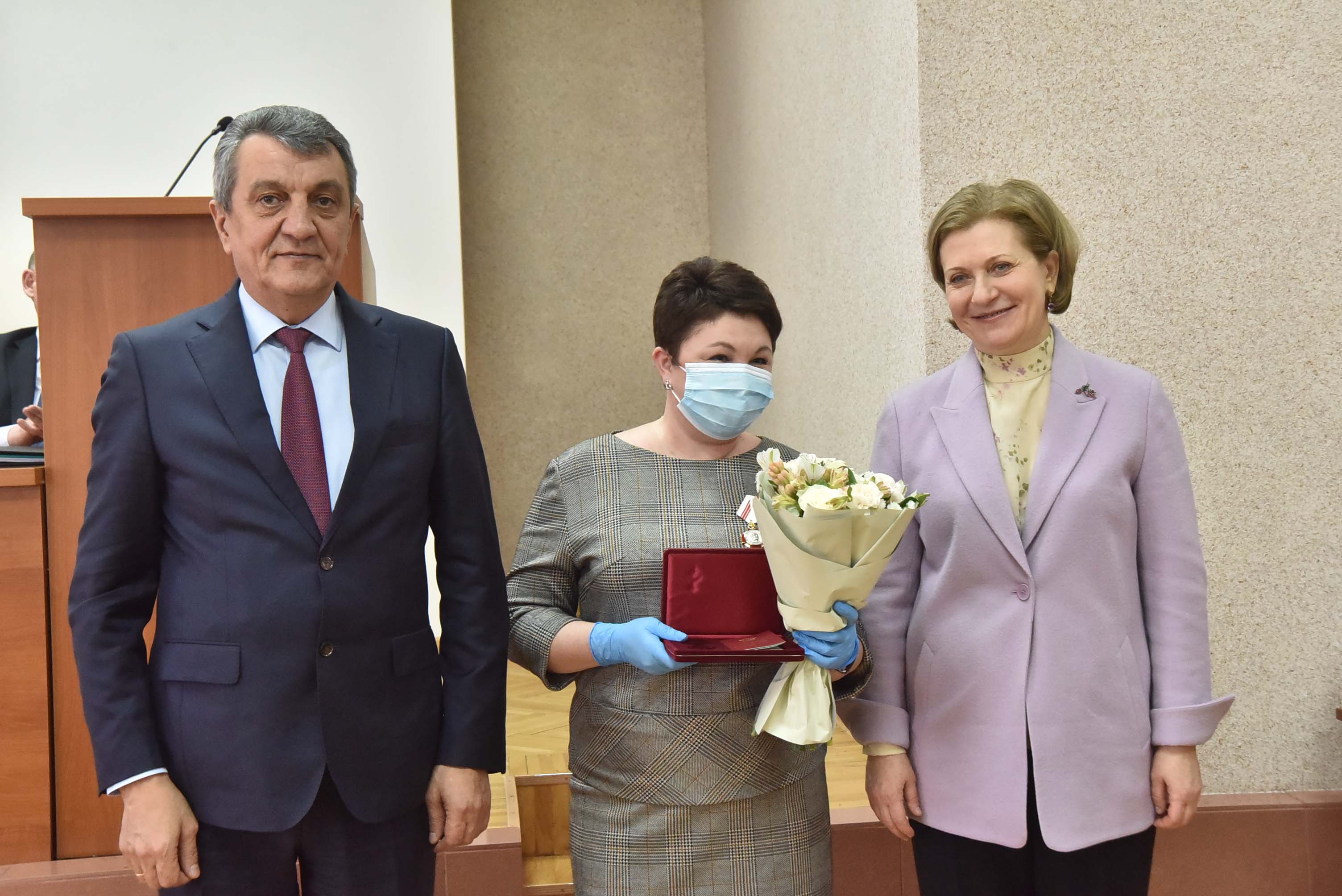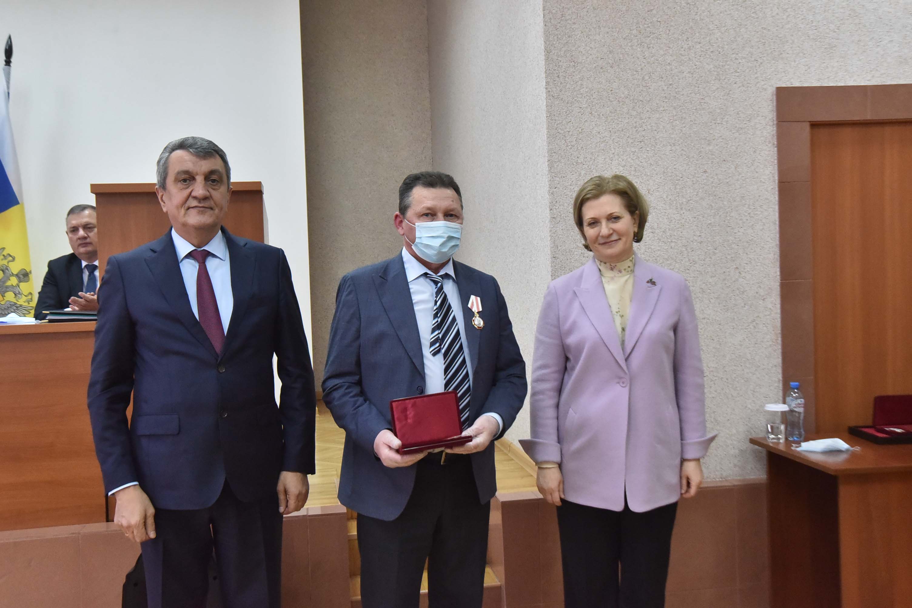 Анна Попова и Сергей Меняйло вручили государственные награды за большой вклад в борьбу с коронавирусной инфекцией, самоотверженность и высокий профессионализм лучшим сотрудникам управления и подведомственных Роспотребнадзору учреждений Новосибирской области.