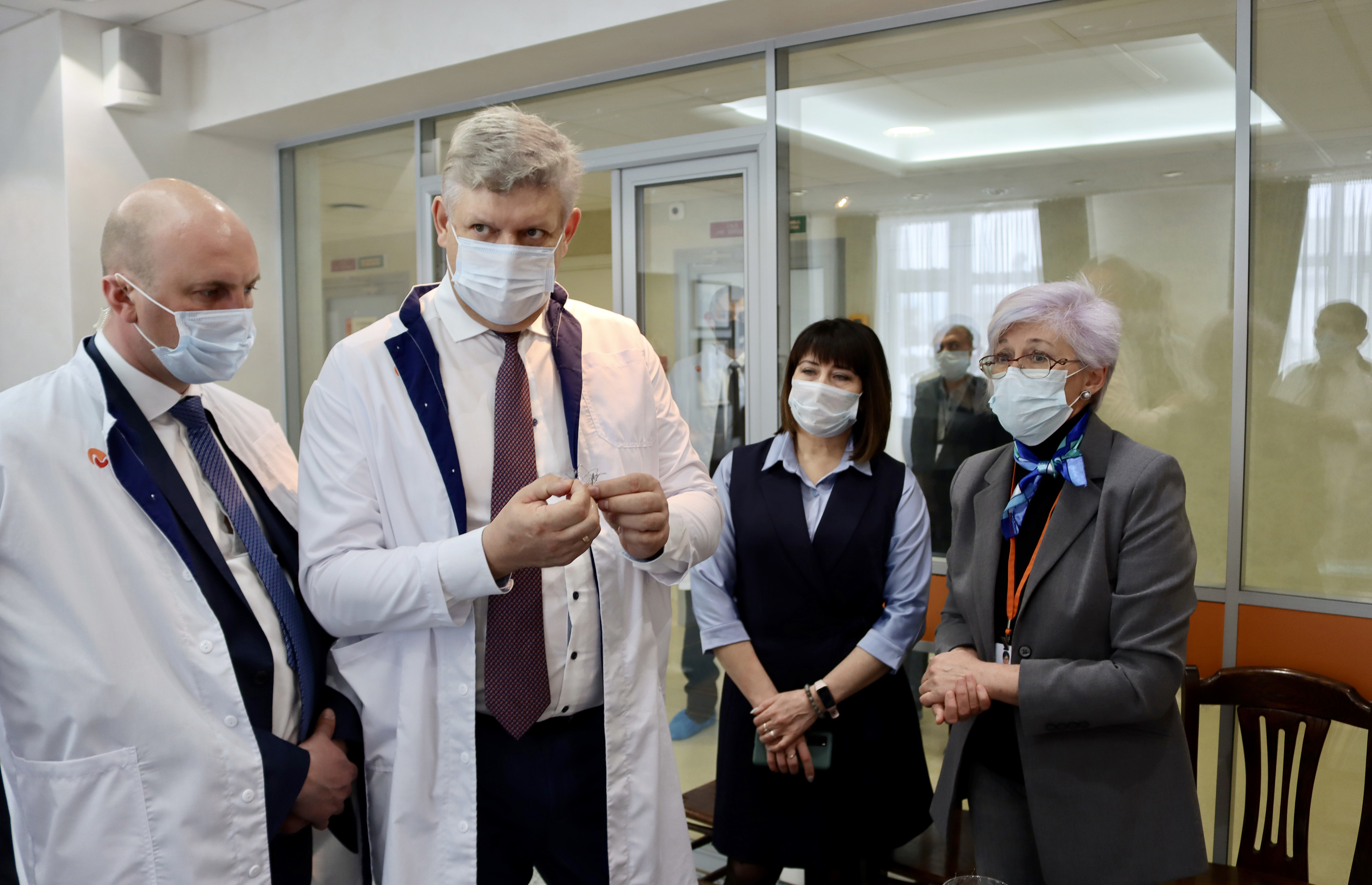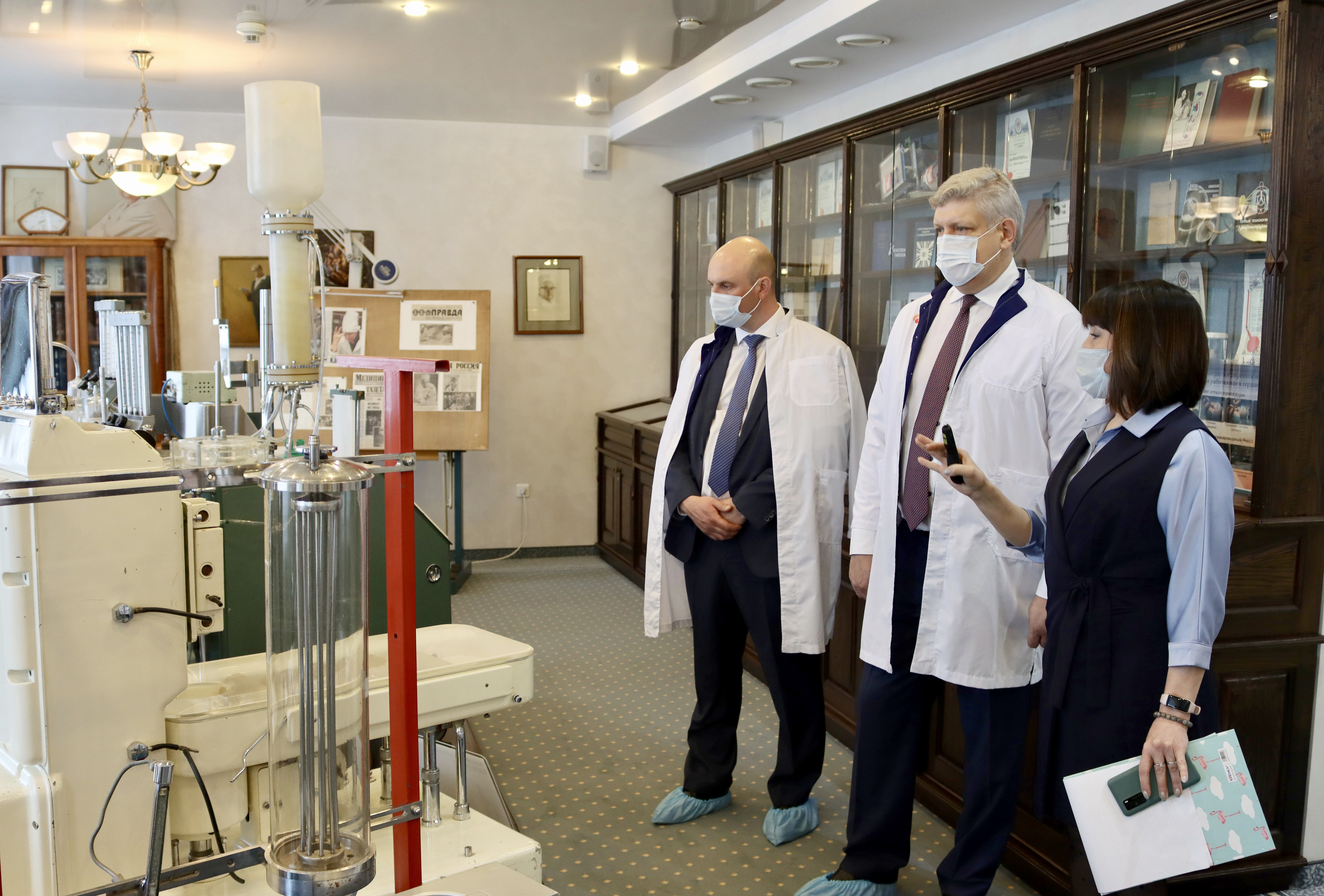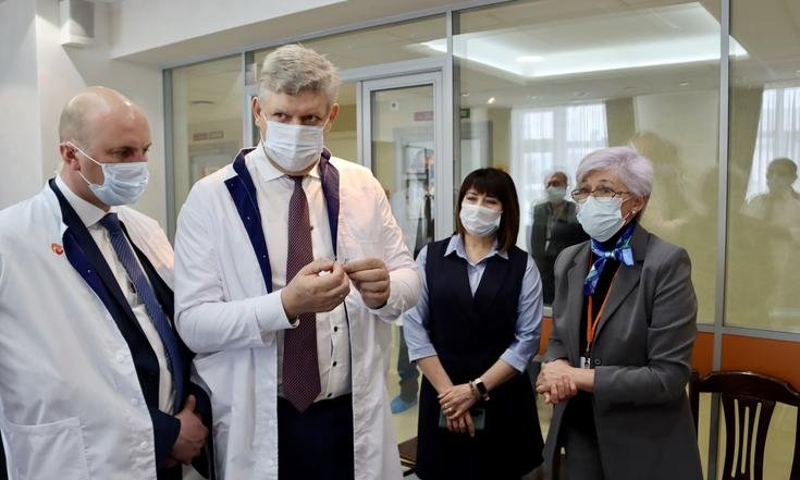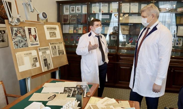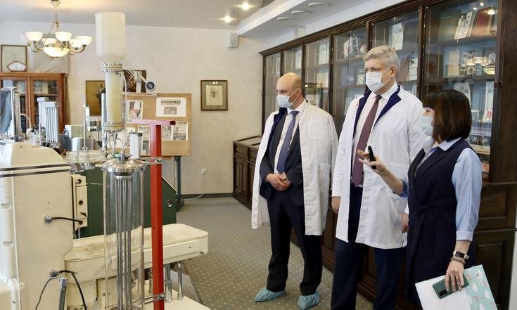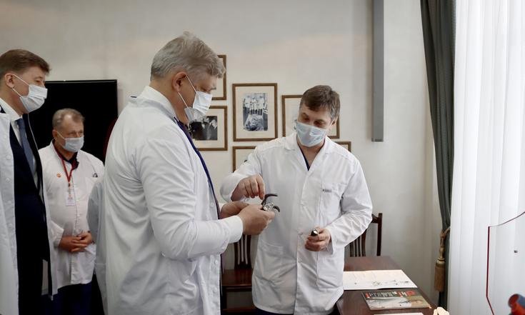 Также полномочный представитель ознакомился с возможностями Национального медицинского исследовательского центра имени академика Е.Н.Мешалкина Министерства здравоохранения РФ. Учреждение является одним из трёх российских национальных исследовательских центров по профилю «сердечно-сосудистая хирургия», здесь выполняется около 5% от общероссийского объёма высокотехнологичных операций с использованием искусственного кровообращения, больше всего в России операций при нарушении ритма сердца, почти 9% вмешательств при врождённых пороках сердца, включая новорождённых и детей первого года жизни.