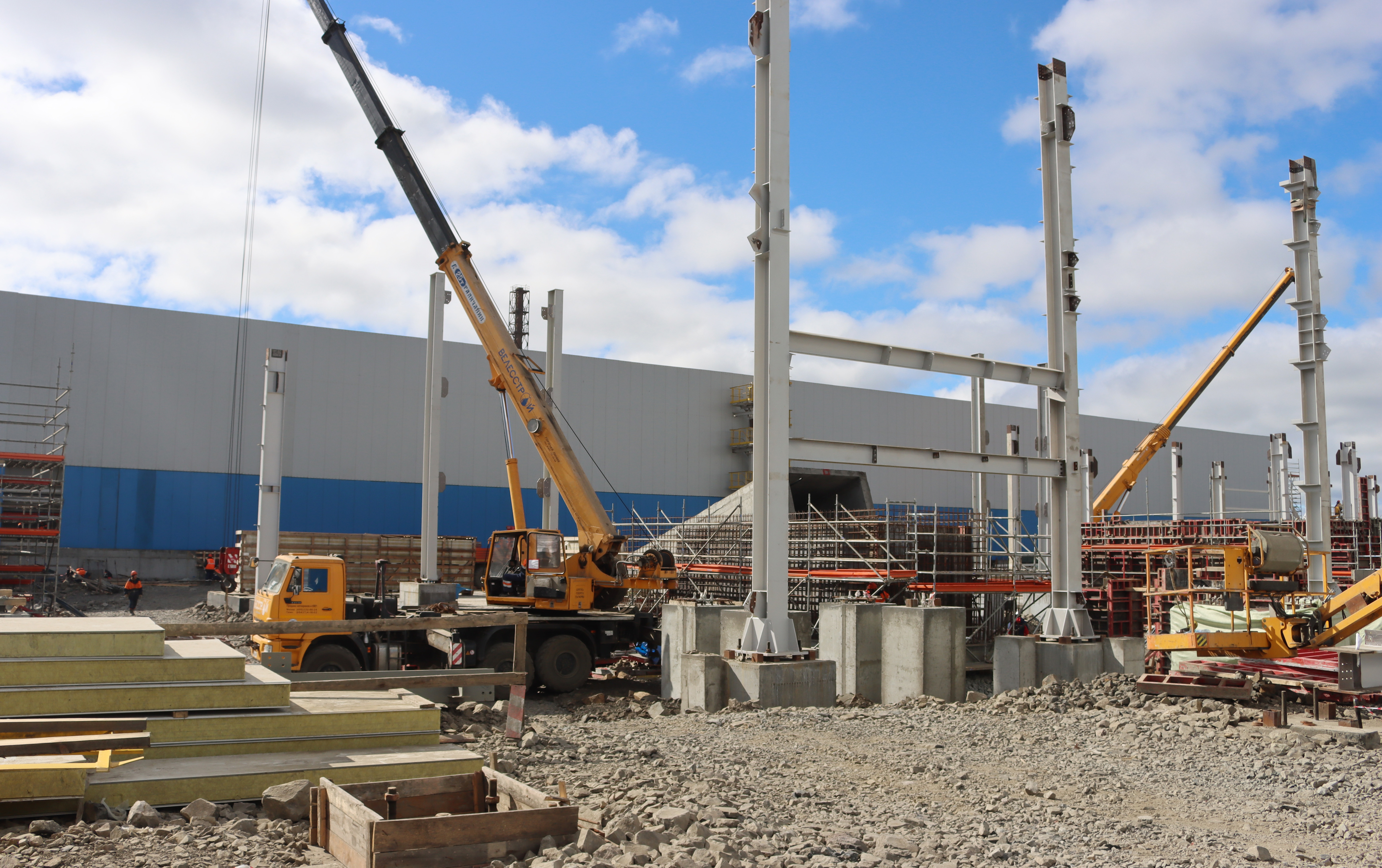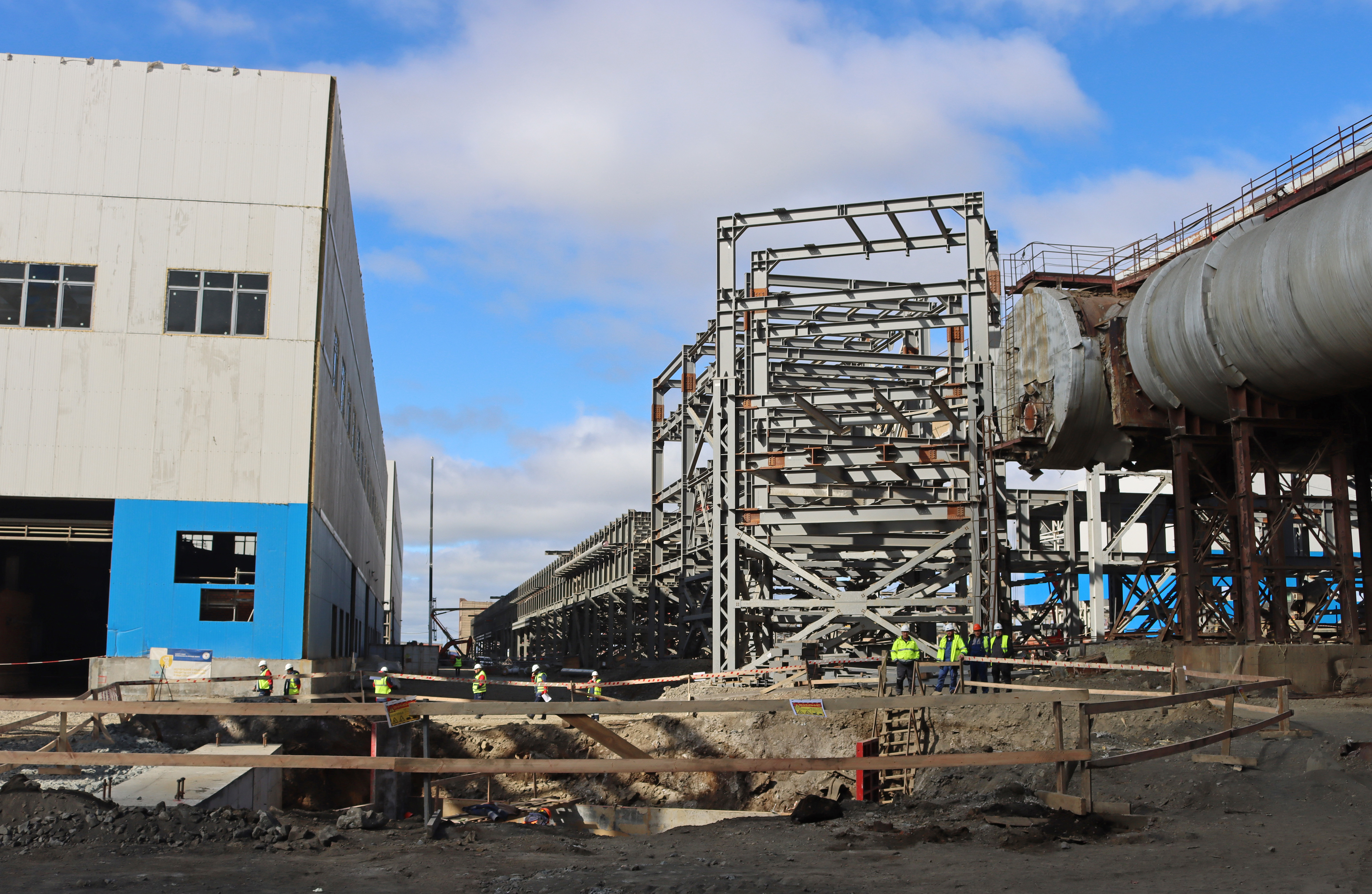 К настоящему моменту разработана необходимая документация, доставлена часть оборудования. Проводятся строительно-монтажные работы на промышленных площадках Надеждинского металлургического завода имени Б.И. Колесникова и Медного завода. В круглосуточном режиме к строительству привлечено более 3 тысяч рабочих и специалистов, задействовано около 370 единиц спецтехники и планируется постепенное увеличение их числа.