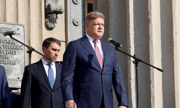 «Поздравляю вас с поступлением в этот замечательный университет. Вы прошли сложный отбор, и теперь перед вами открывается прекрасный мир студенчества. Отрасль, которую вы выбрали – это каркас российской экономики, без неё невозможно строить большие планы на будущее. Убеждён, что пройдёт совсем немного времени, и вы получите возможность управлять значимыми предприятиями в данной сфере. Дерзайте, стремитесь к вершинам, служите России и всему человечеству», – сказал полпред.