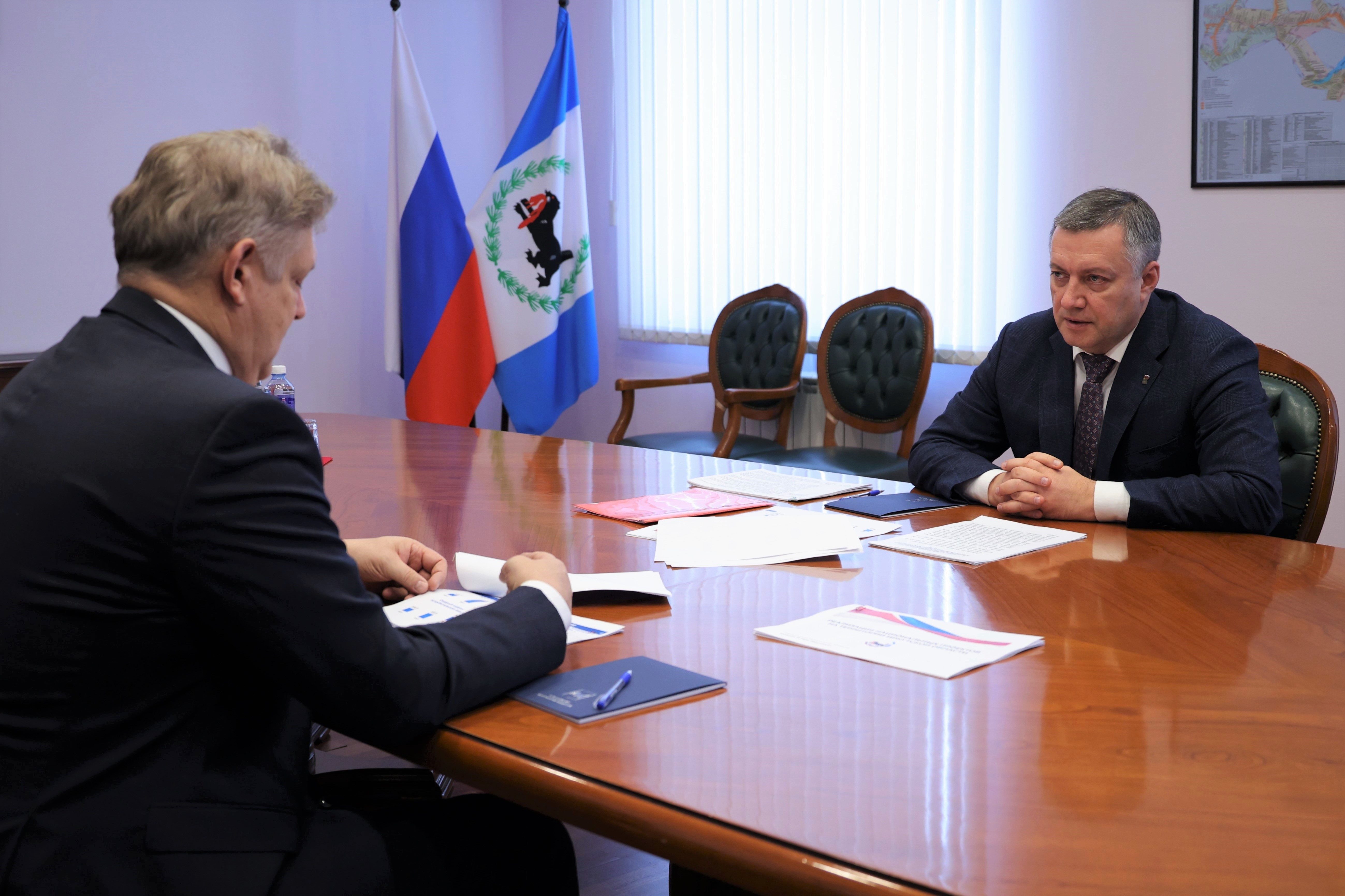 Актуальные вопросы социально-экономического развития региона рассматривались в рамках встреч полпреда с Губернатором Иркутской области Игорем Кобзевым и Председателем Законодательного собрания региона Александром Ведерниковым.