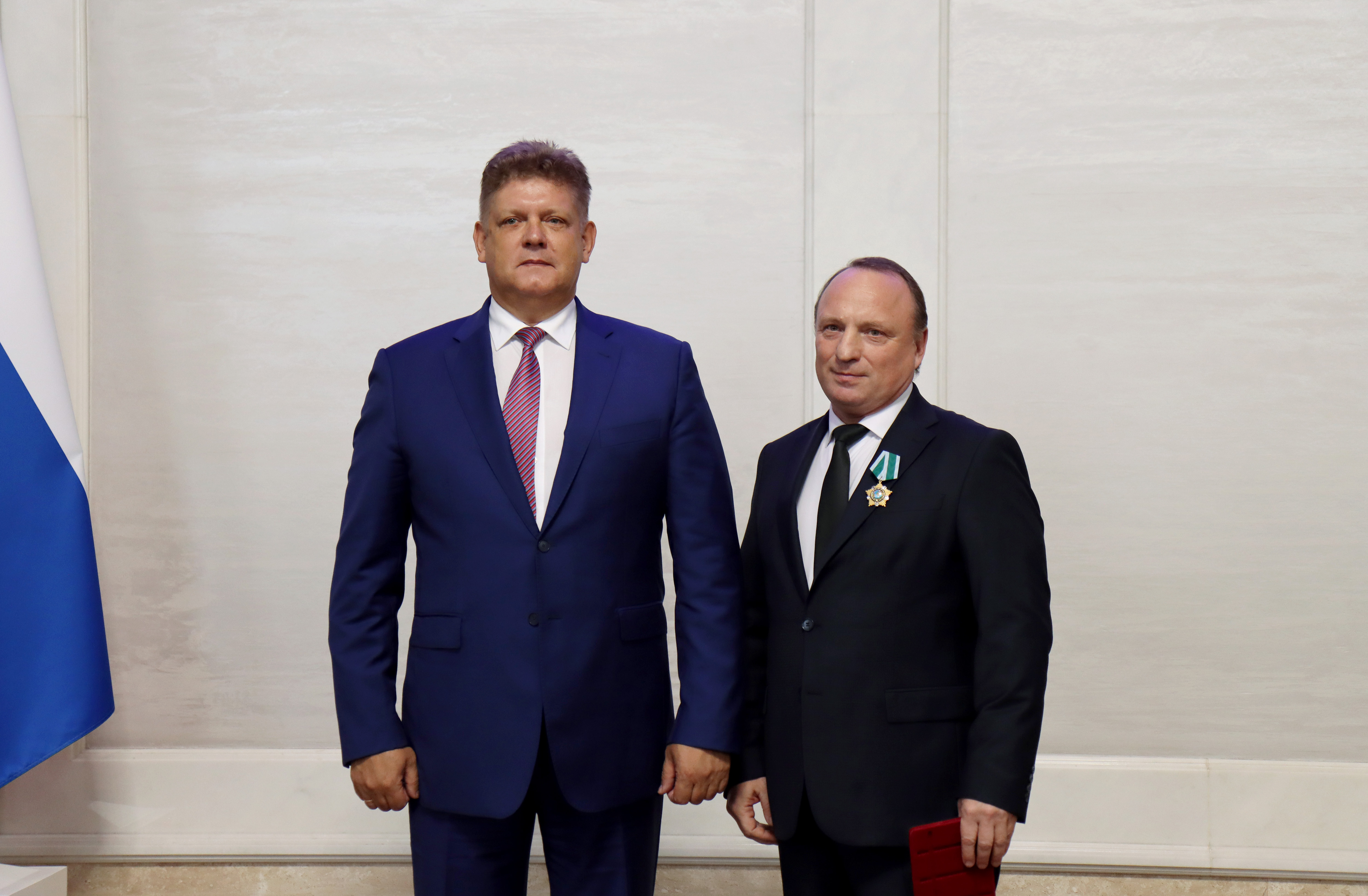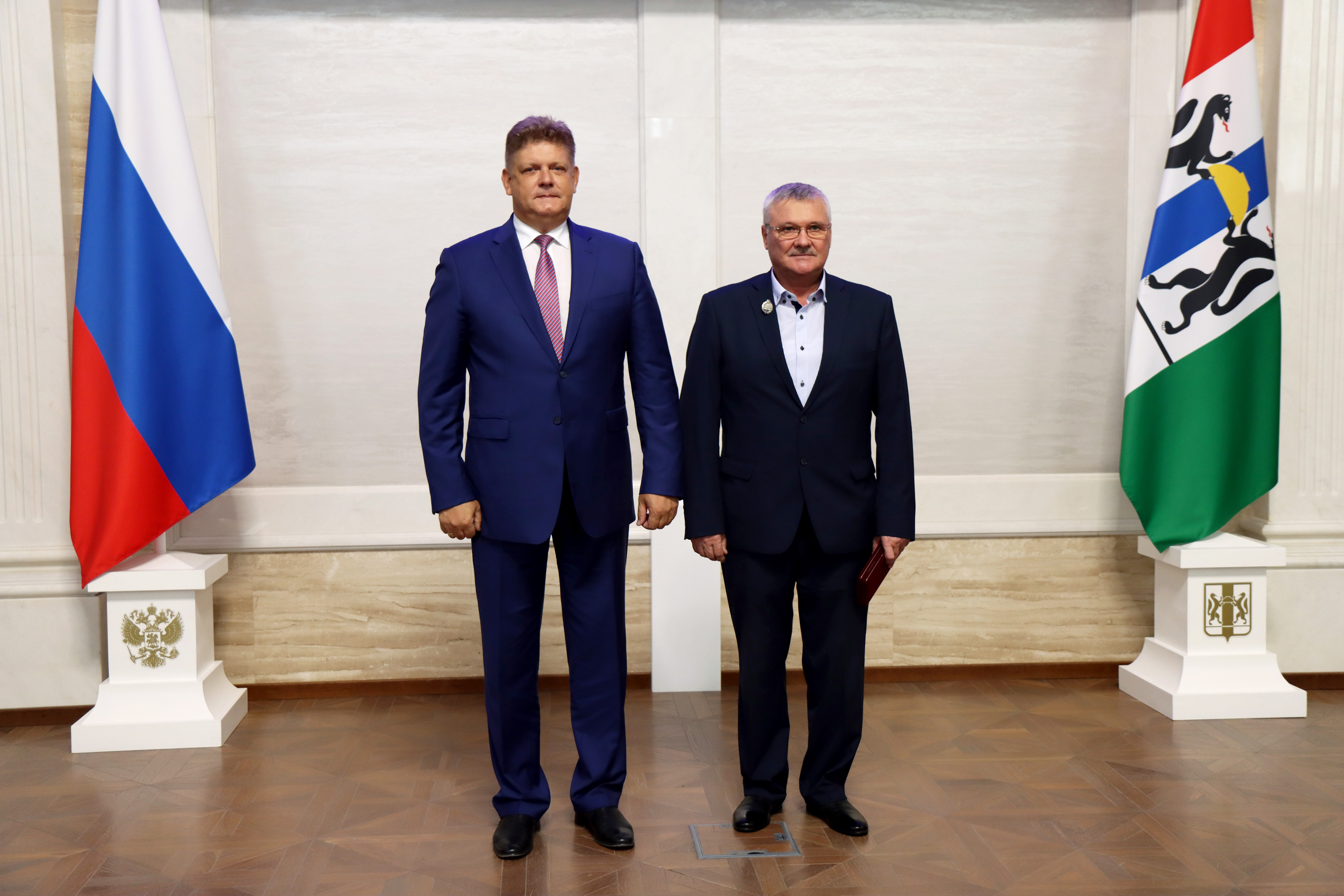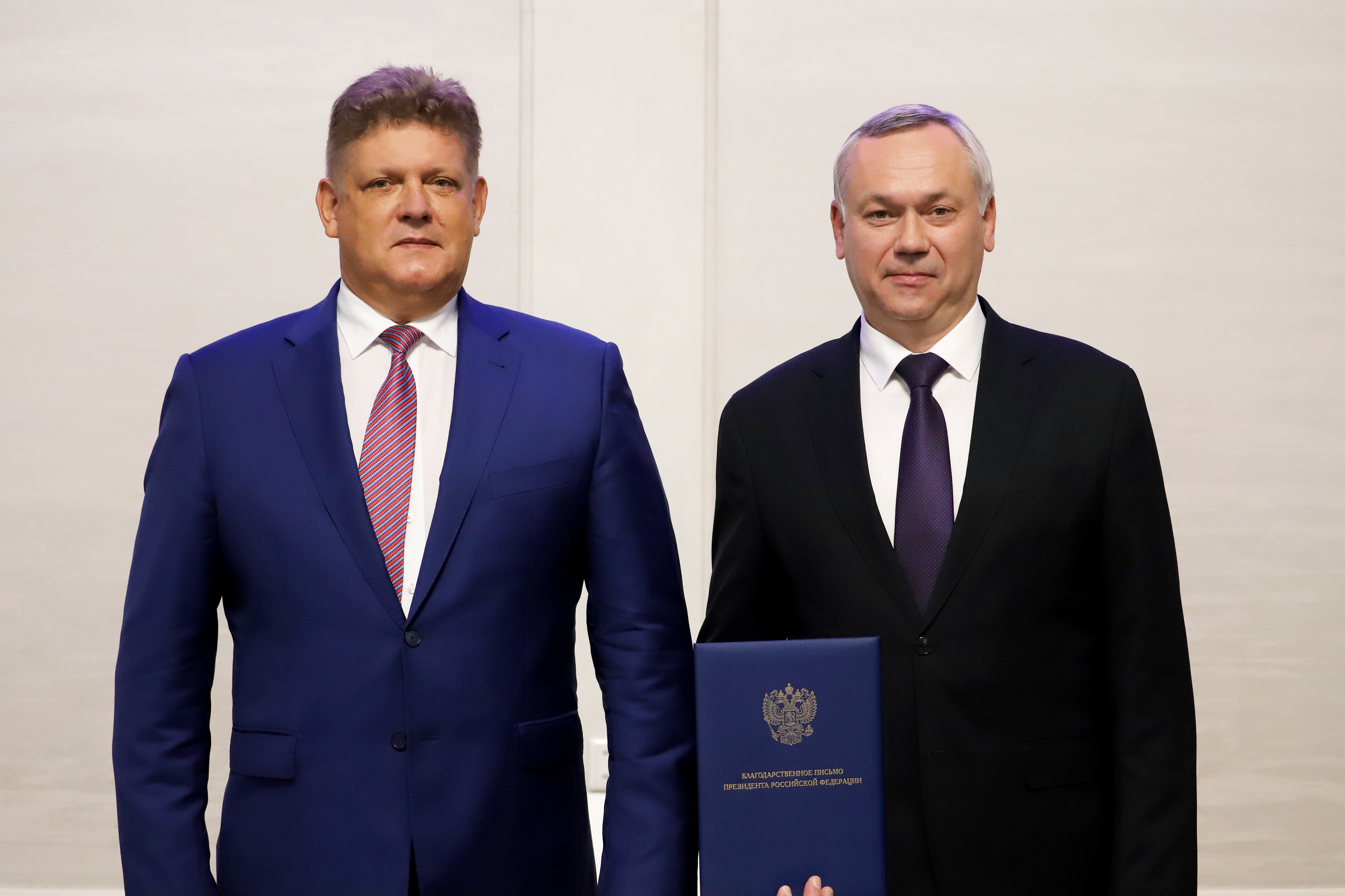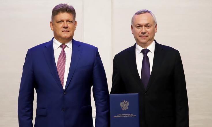 По поручению главы государства полномочный представитель вручил Благодарственное письмо Президента России за вклад в реализацию стратегии развития строительной отрасли и жилищно-коммунального хозяйства Российской Федерации Губернатору Новосибирской области Андрею Травникову.