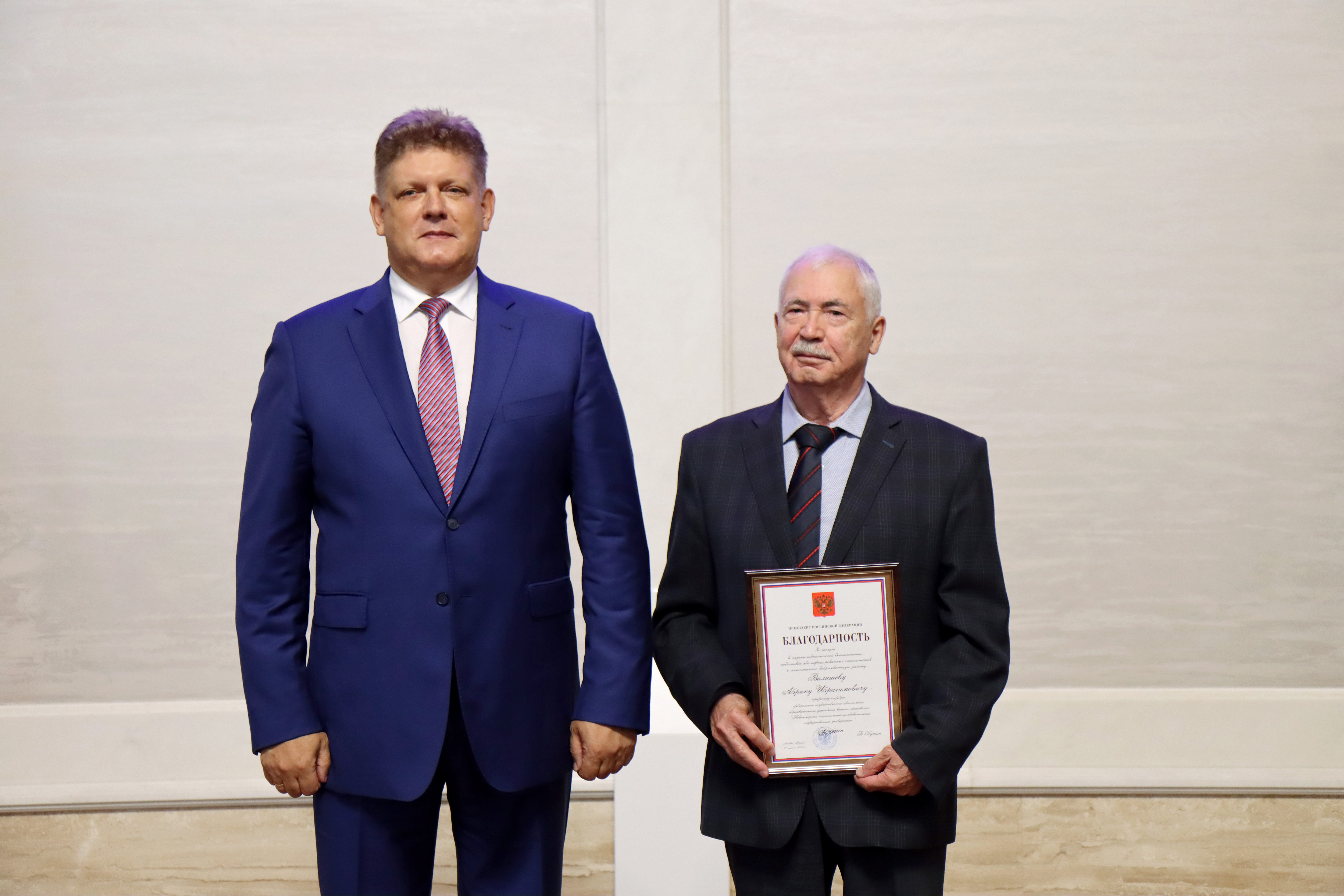 Благодарность Президента Российской Федерации за заслуги в научно-педагогической деятельности, подготовке квалифицированных специалистов и многолетнюю добросовестную работу объявлена Абрику Валишеву, профессору кафедры федерального государственного автономного образовательного учреждения высшего образования «Новосибирский национальный исследовательский государственный университет». Почётное звание «Заслуженный работник высшей школы Российской Федерации» присвоено заведующей кафедрой института истории, гуманитарного и социального образования федерального государственного бюджетного образовательного учреждения высшего образования «Новосибирский государственный педагогический университет» Татьяне Ромм. Орденом Дружбы награждён ректор федерального государственного бюджетного образовательного учреждения высшего образования «Новосибирский государственный архитектурно-строительный университет (Сибстрин)» Юрий Сколубович.