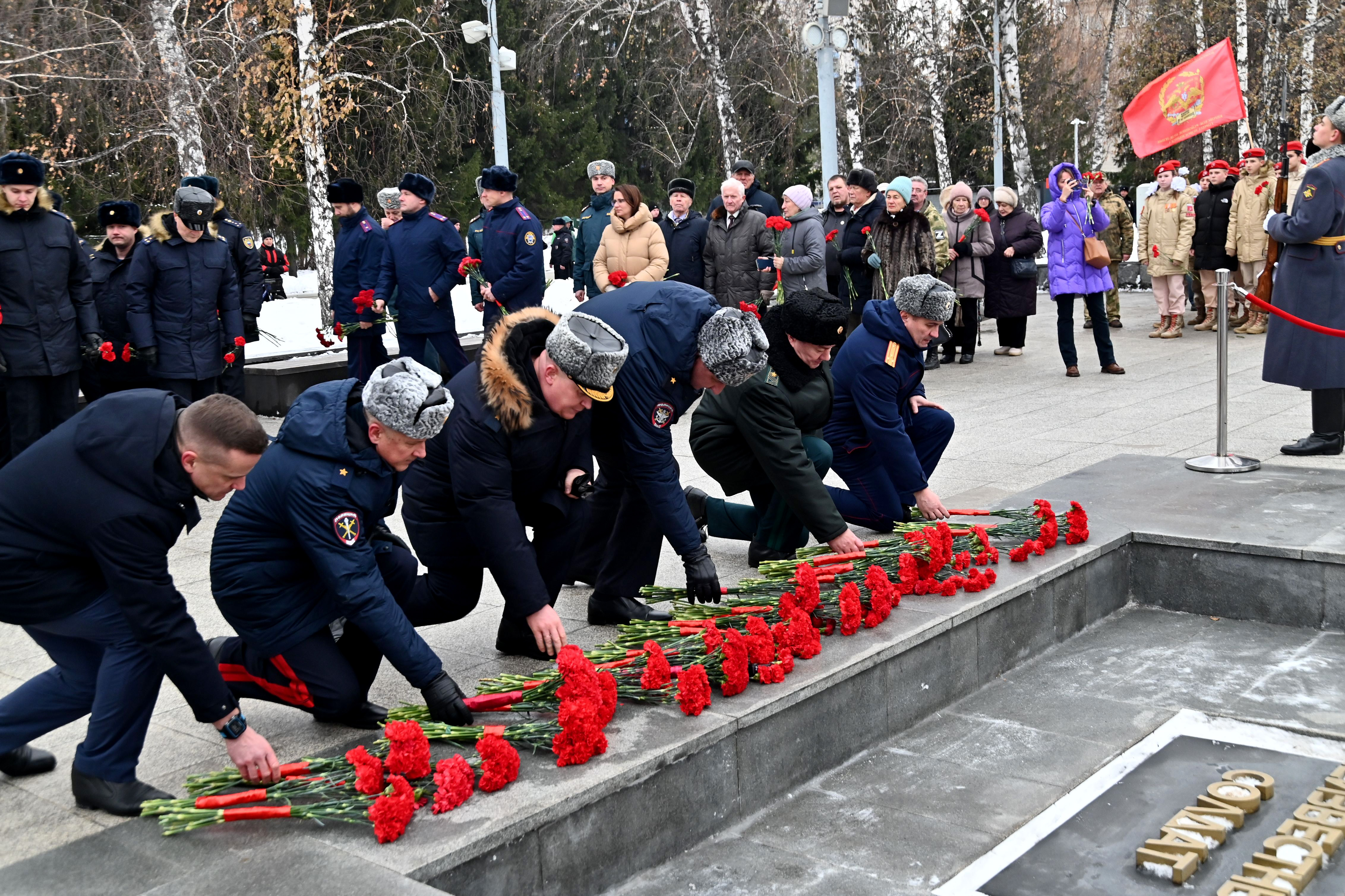 Церемония прошла в память о бессмертном подвиге советских воинов, в том числе сибиряков, павших в годы Великой Отечественной войны, чьи имена остались неизвестными. Вместе с полпредом в мероприятии участвовали руководители Новосибирской области и города, представители ветеранских и молодежных общественных организаций, курсанты Поста №1, воспитанники патриотических клубов и центров.