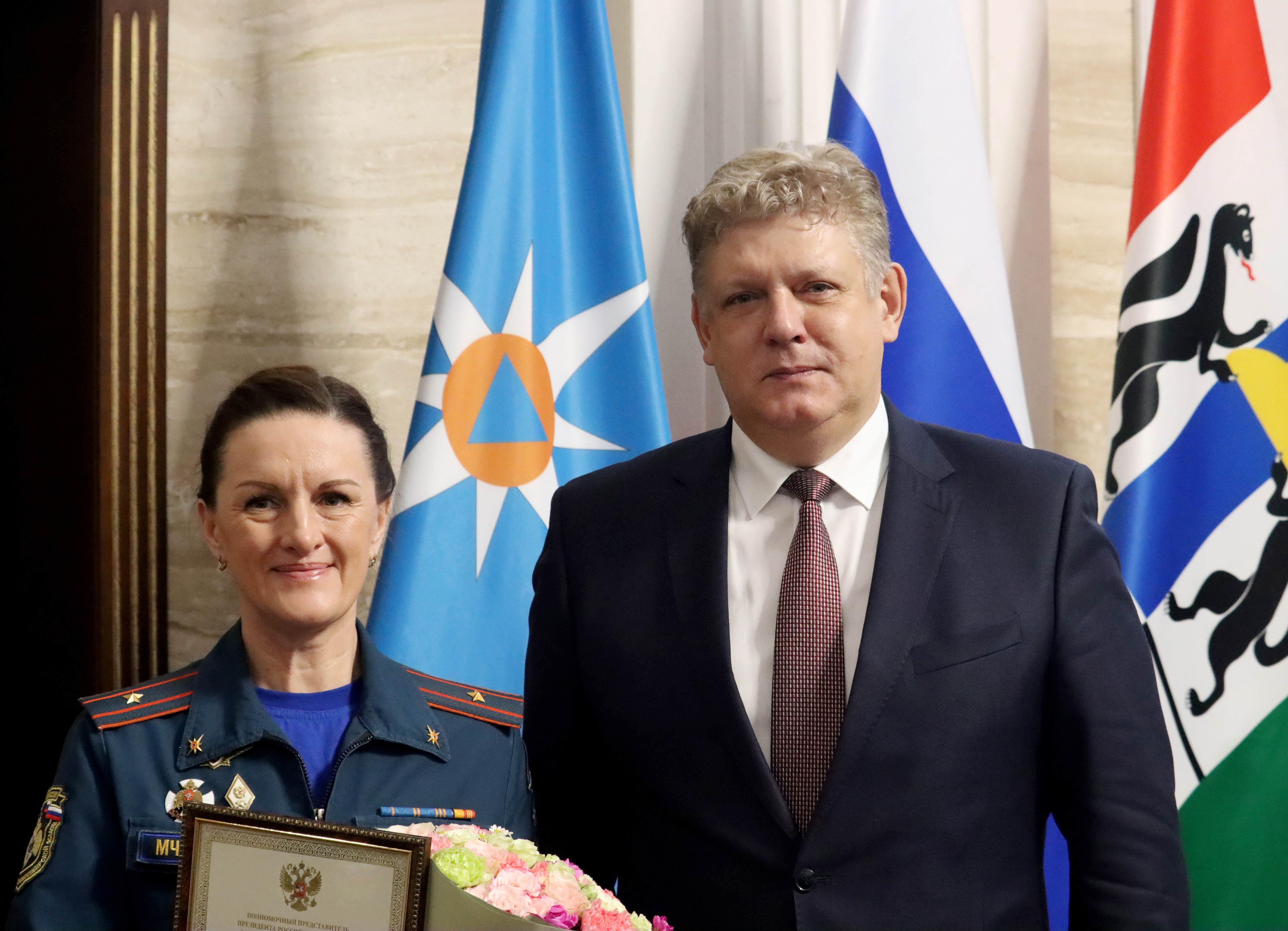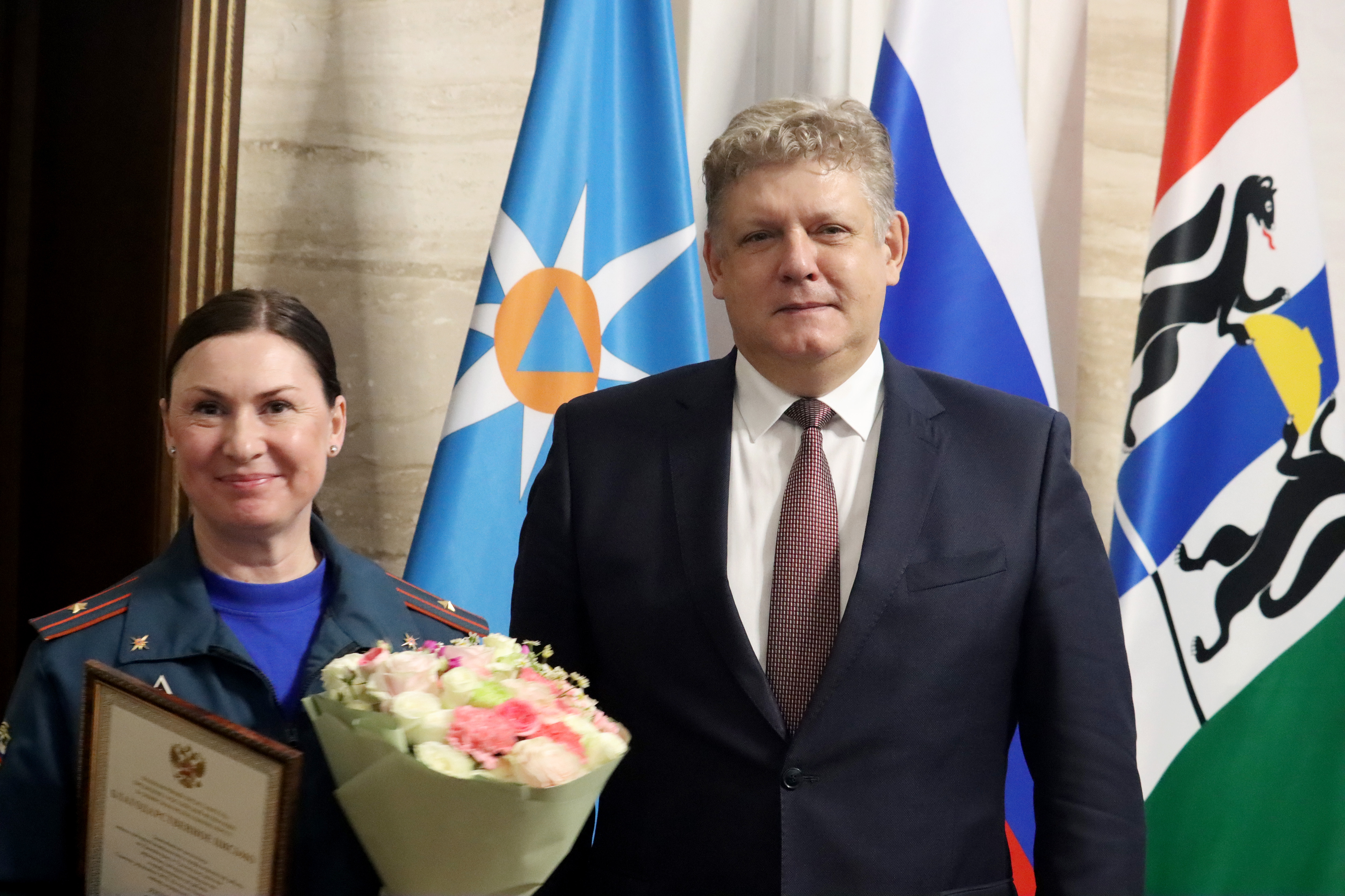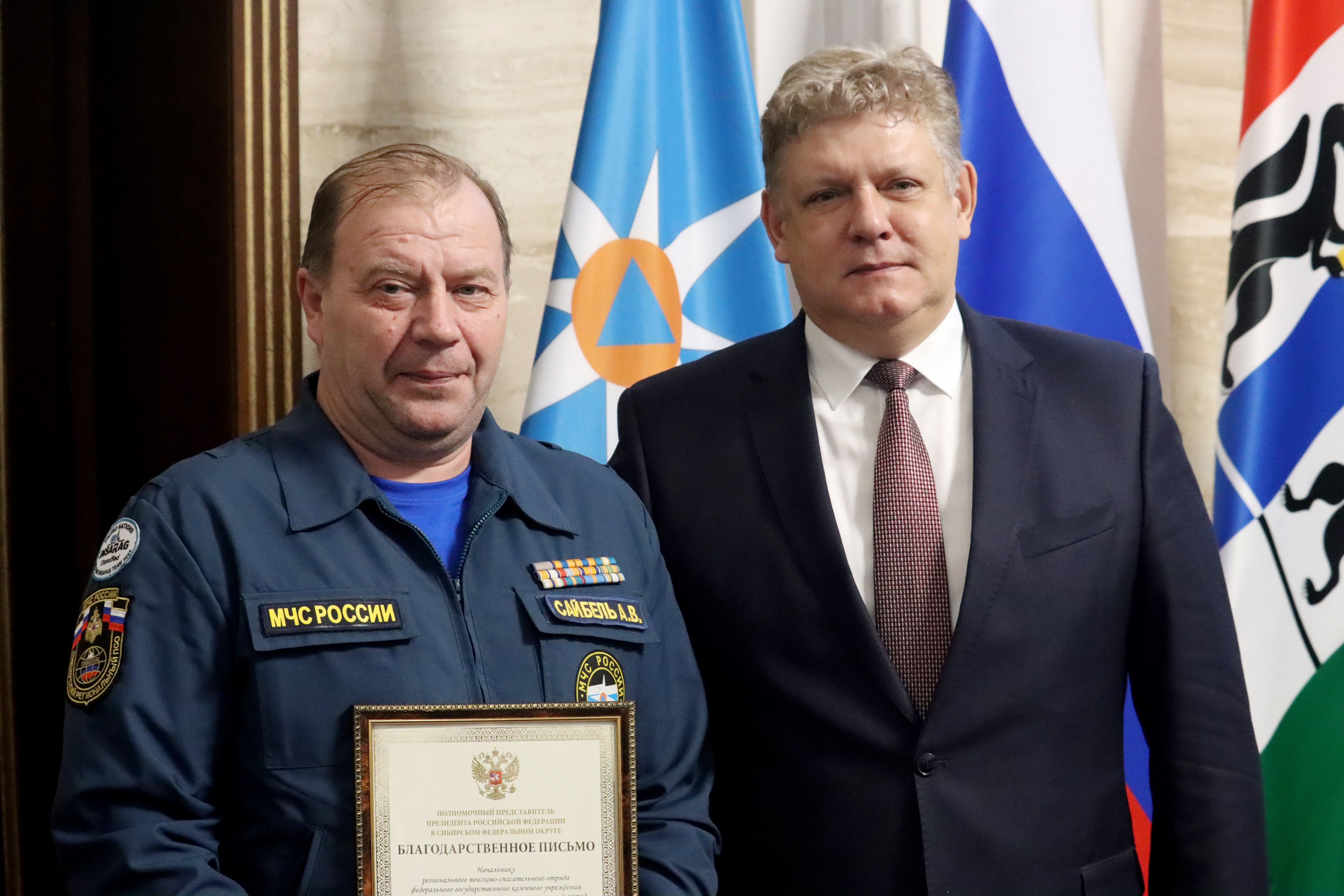 Благодарственные письма за верное служение избранному делу, высочайший профессионализм, личный вклад в обеспечение успешного функционирования единой государственной системы предупреждения и ликвидации чрезвычайных ситуаций из рук полномочного представителя получили начальник отдела взаимодействия с органами управления функциональных и территориальных подсистем РСЧС федерального округа Центра управления в кризисных ситуациях Главного управления МЧС России по Новосибирской области Анастасия Миллер, заместитель начальника отдела надзорной деятельности и профилактической работы по Коченёвскому и Чулымскому районам управления надзорной деятельности и профилактической работы Главного управления МЧС России по Новосибирской области Елена Андриянова, начальник медицинской службы – начальник медицинского пункта Сибирского спасательного центра МЧС России Владимир Наумов, начальник регионального поисково-спасательного отряда федерального государственного казенного учреждения «Сибирский региональный поисково-спасательный отряд МЧС России» Александр Сайбель.