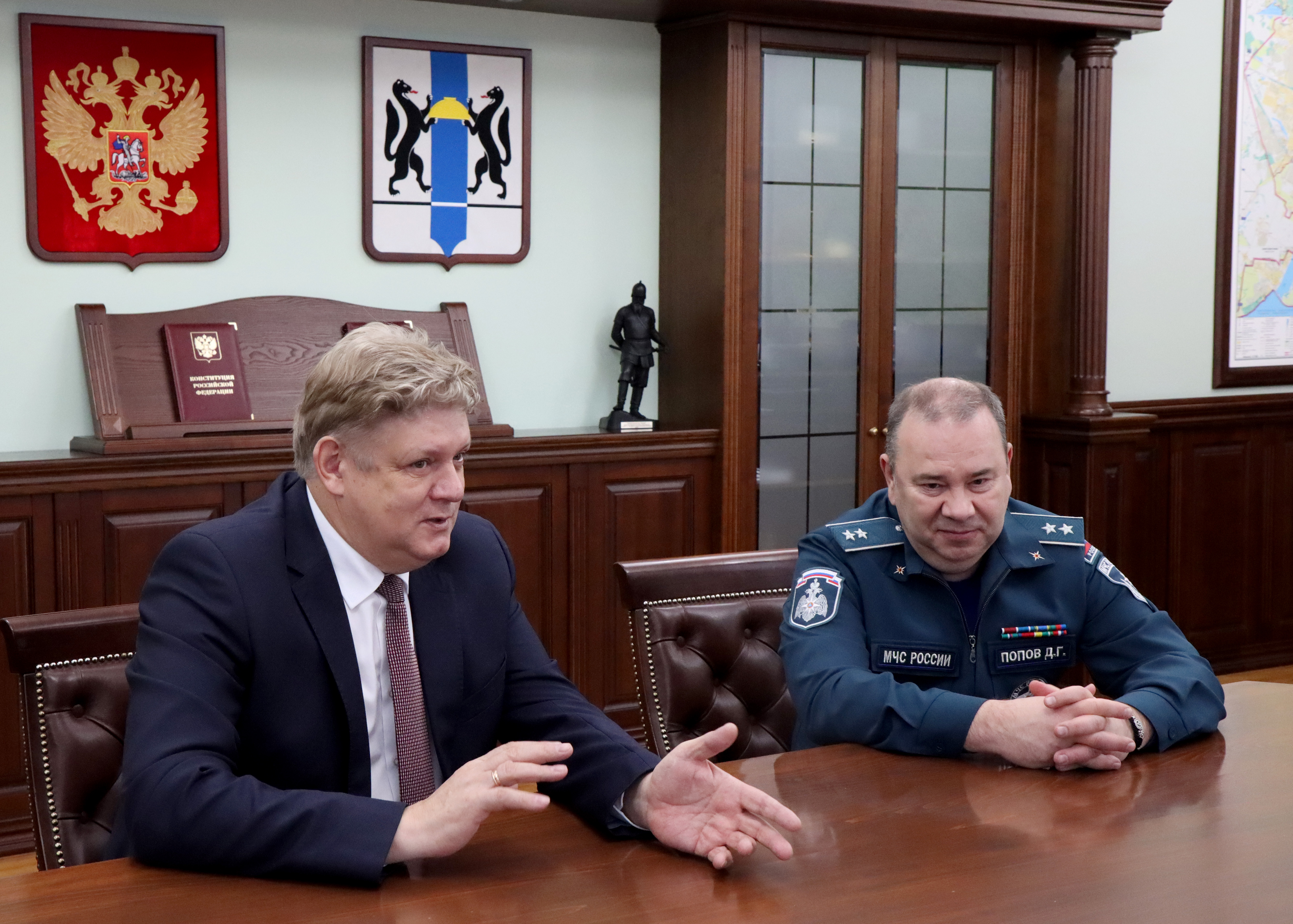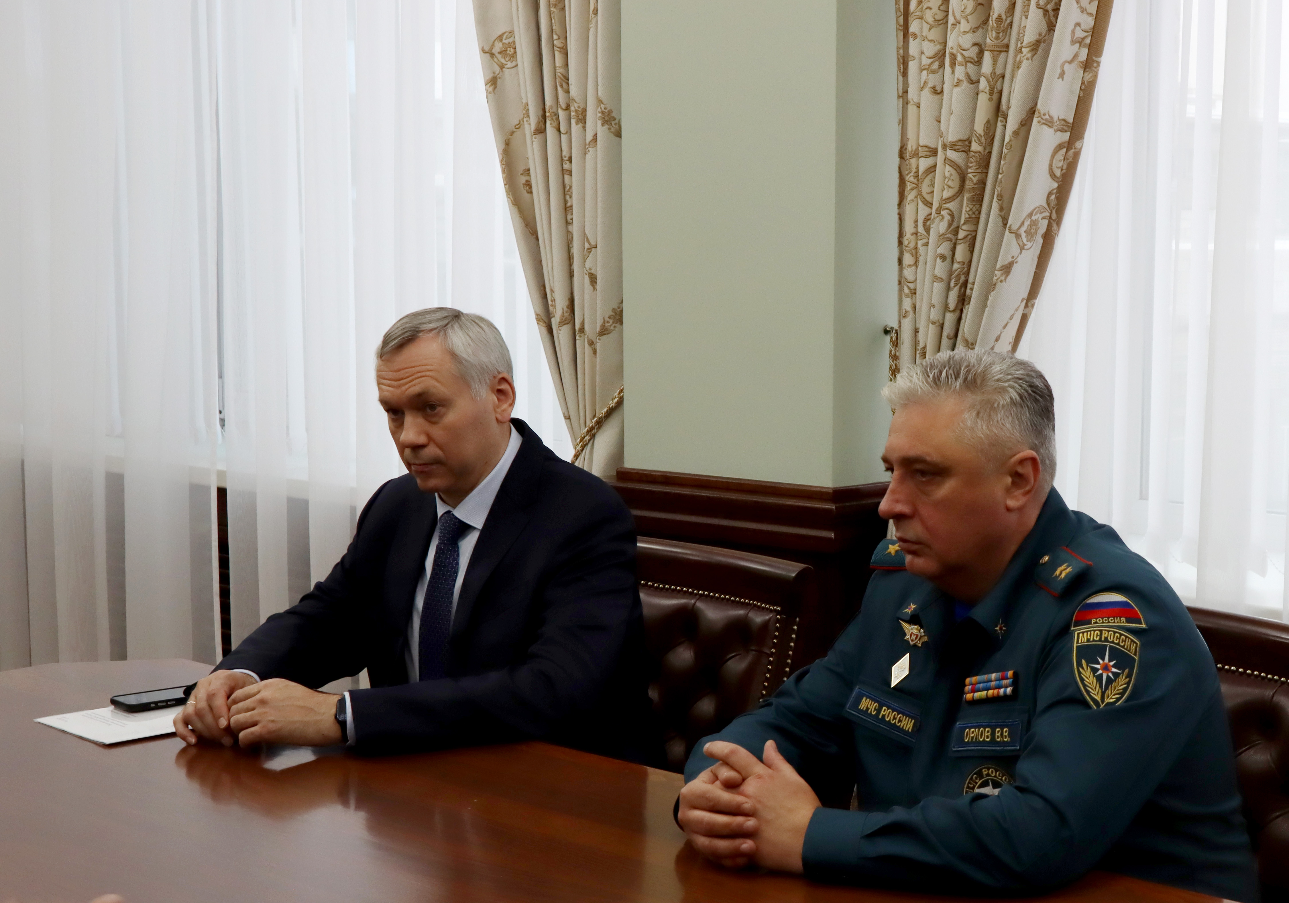 Ранее в здании Правительства Новосибирской области состоялась рабочая встреча полномочного представителя со статс-секретарем – заместителем Министра Российской Федерации по делам гражданской обороны, чрезвычайным ситуациям и ликвидации последствий стихийных бедствий Денисом Поповым, губернатором Новосибирской области Андреем Травниковым и начальником Главного управления МЧС России по Новосибирской области Виктором Орловым. Обсуждались актуальные вопросы работы по обеспечению безопасности граждан.