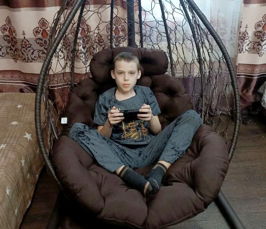 Одиннадцатилетний Кирилл из Красноярска любит проводить время на свежем воздухе и качаться на качелях. В подарок от полномочного представителя мальчик получил большое и уютное кресло-кокон, чтобы проводить в нём время зимой, пока на улице холодно.