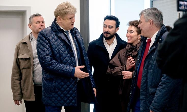 Сегодня полпред посетил объекты, которые входят во вторую очередь строительства: корпус поточных аудиторий со студенческим проектным центром, научной библиотекой и переходом – он был открыт в августе 2025 года, а также строящиеся научно-исследовательский центр и учебно-научный центр Института медицины и медицинских технологий.