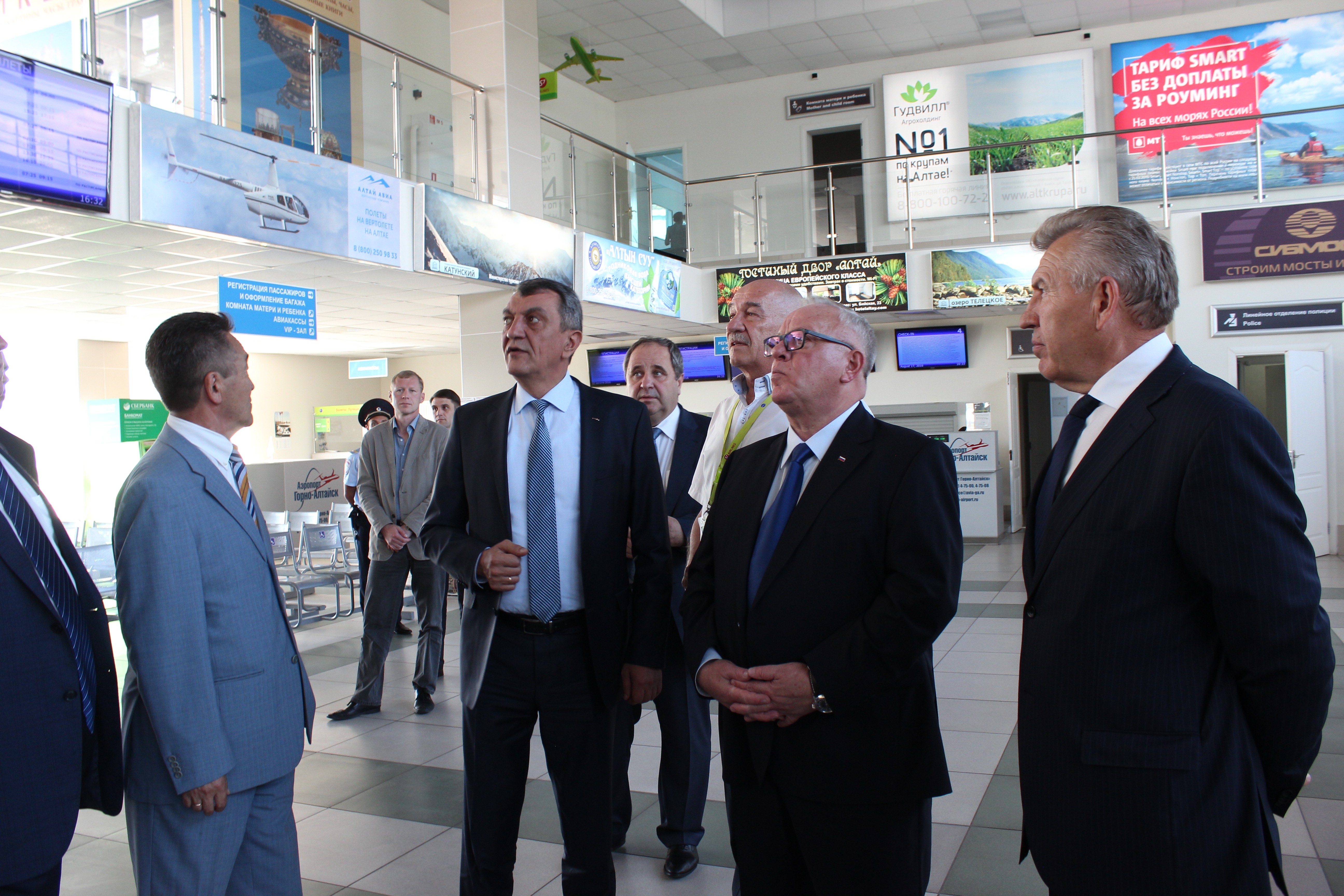 В г. Горно-Алтайске Сергей Меняйло оценил ход капитального ремонта здания Республиканской гимназии имени В.К.Плакаса, после его завершения будут созданы дополнительные 260 учебных мест. Во время посещения объекта с главой региона Александром Бердниковым обсуждались вопросы подготовки образовательных учреждений республики к новому учебному году. Также полпред осмотрел новый корпус Республиканской детской больницы. Строительство здания началось в мае текущего года, в настоящее время готовность объекта составляет 99%. В корпусе разместятся приемное, детское хирургическое отделения, детское отделение травматологии и ортопедии, малые операционные залы и кабинеты врачей, палаты для больных.