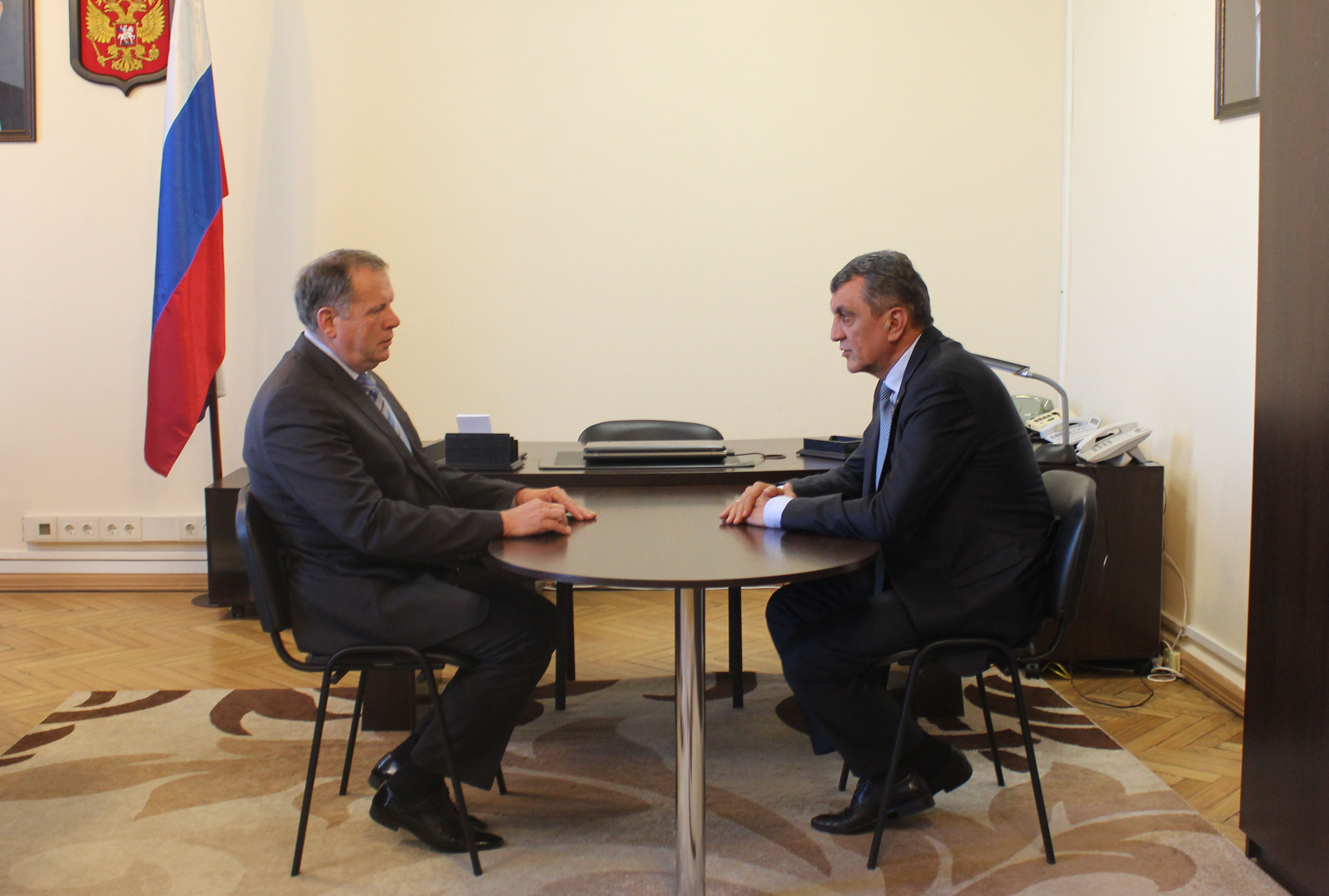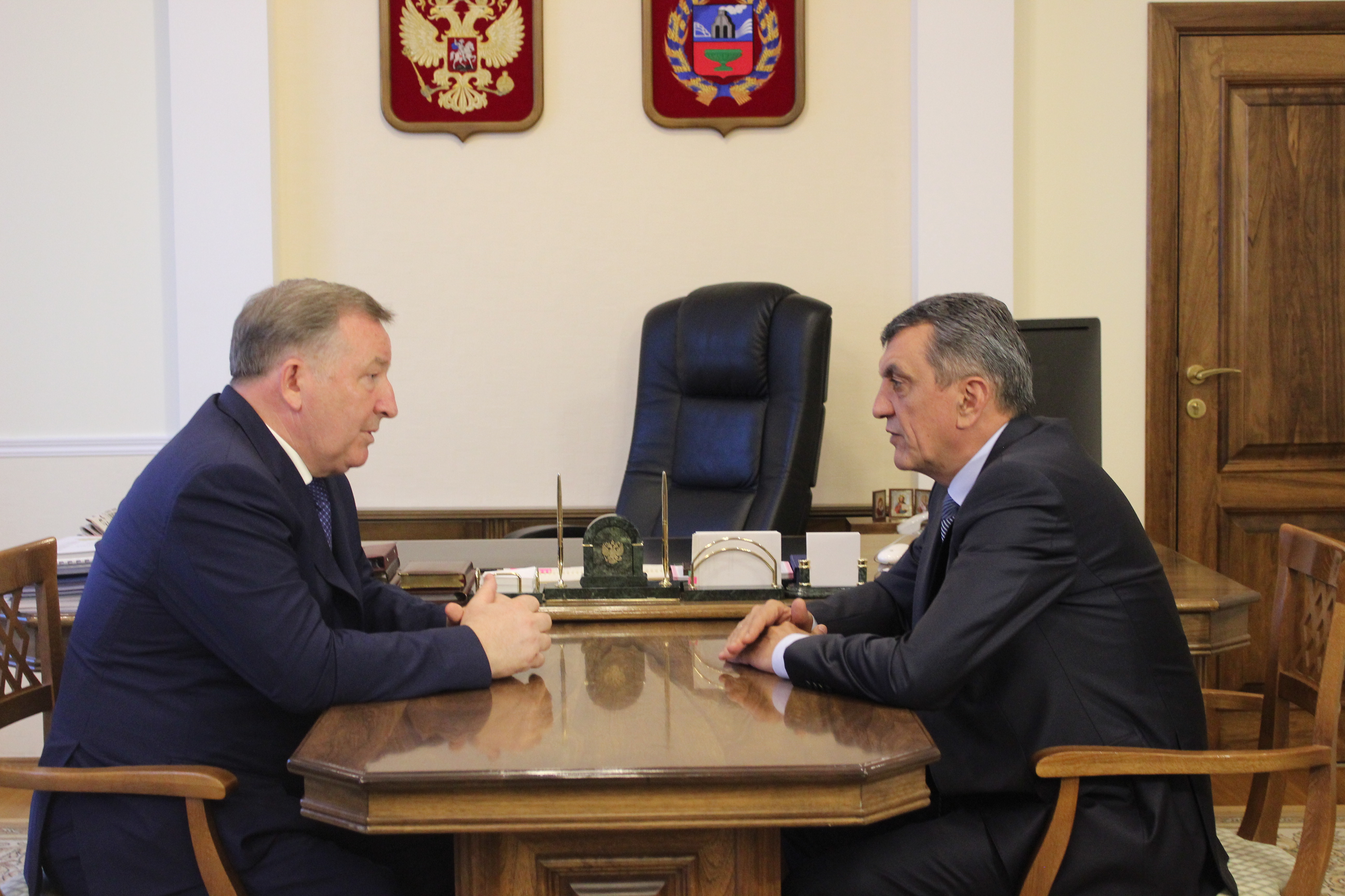 Полномочный представитель главы государства провел рабочую встречу с губернатором Алтайского края Александром Карлиным. В числе вопросов, которые обсуждались, – ход выполнения поручений Президента Российской Федерации по ликвидации в регионе последствий паводка 2014 года, развитие внутренних водных путей в регионах Сибири, подготовка жилищно-коммунального комплекса региона к отопительному сезону. Отвечая на вопросы журналистов, Сергей Меняйло подчеркнул: «В каждом регионе округа подготовка к зимнему периоду сейчас должна быть на постоянном контроле органов власти всех уровней – от глав муниципалитетов до высшего должностного лица региона».