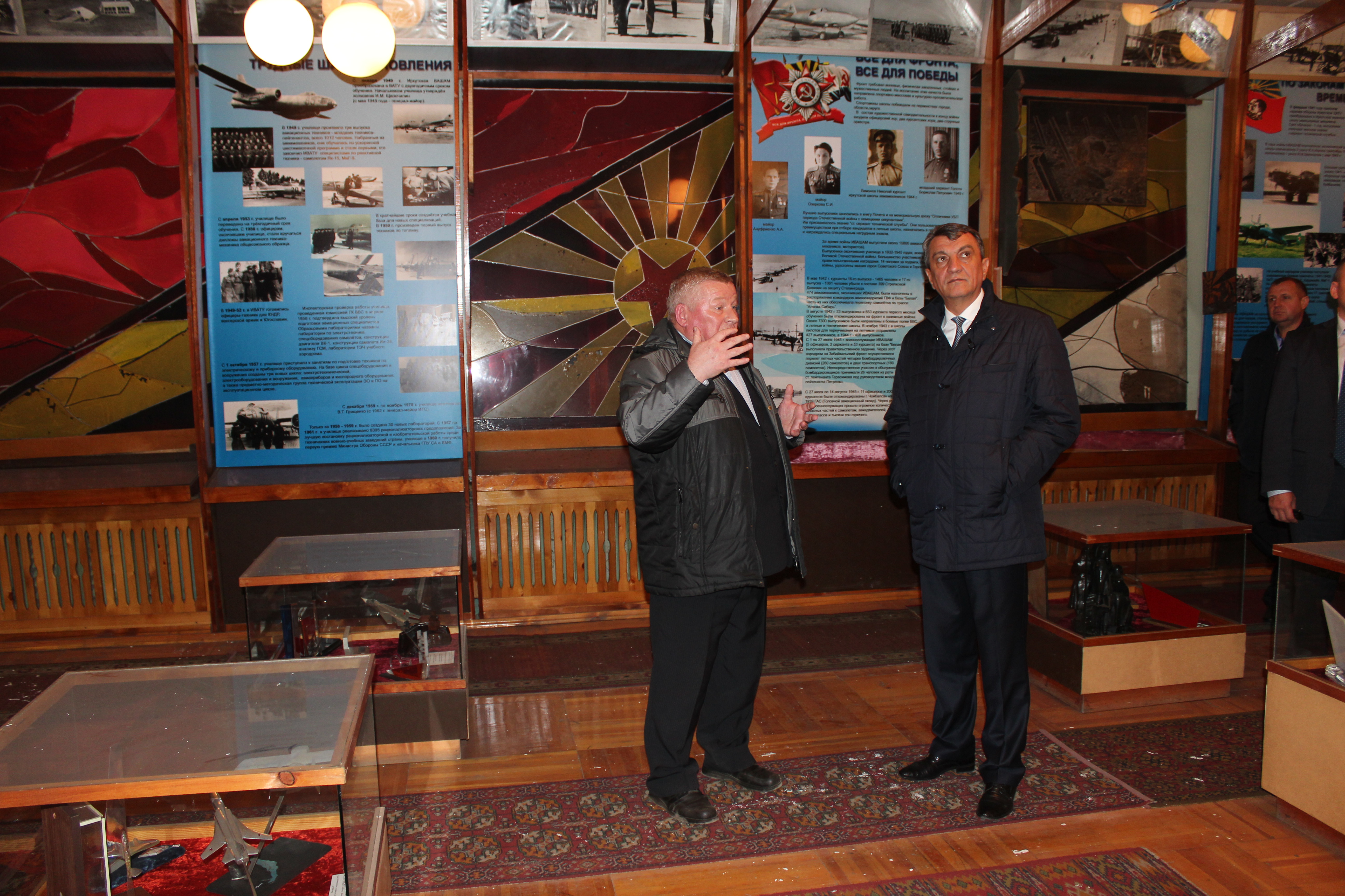 В Иркутске полпред также посетил территорию бывшего военного городка. Сергей Меняйло пообщался с местными жителями, ознакомился с экспозицией музея боевой славы, расположенного в одном из бывших зданий Иркутского высшего военного авиационного инженерного училища.