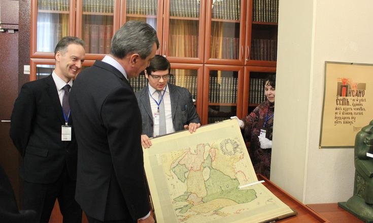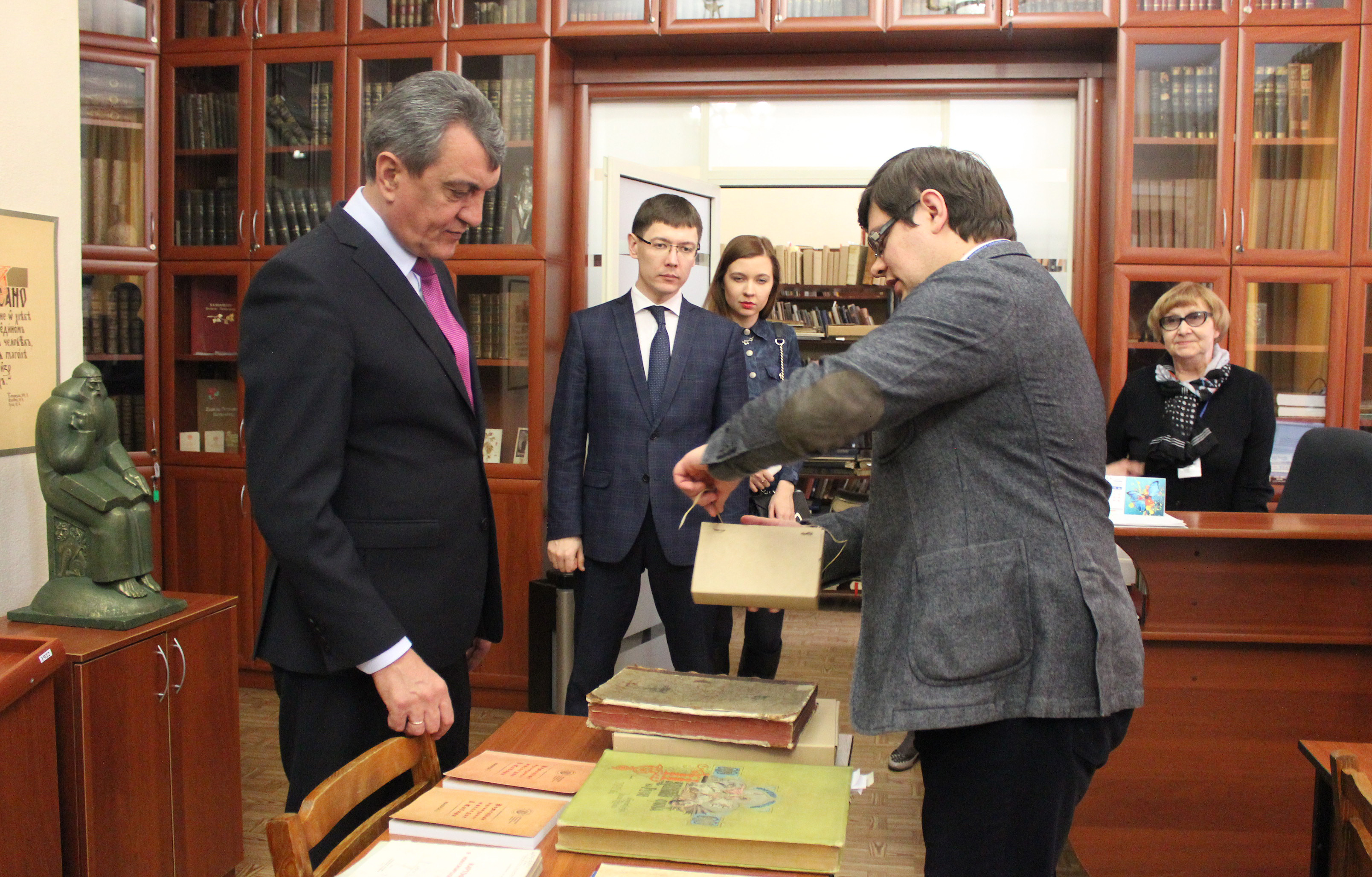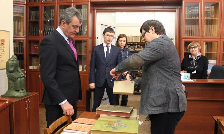 «Книги – это часть национального достояния страны, наша обязанность сохранить и приумножить его для потомков», – сказал полномочный представитель. Полпред подчеркнул значимость активного использования современных электронных технологий в работе библиотеки, направленных на повышение доступности фондов, в том числе и уникальных изданий, рассказывающих об истории государства, для широкого круга читателей.