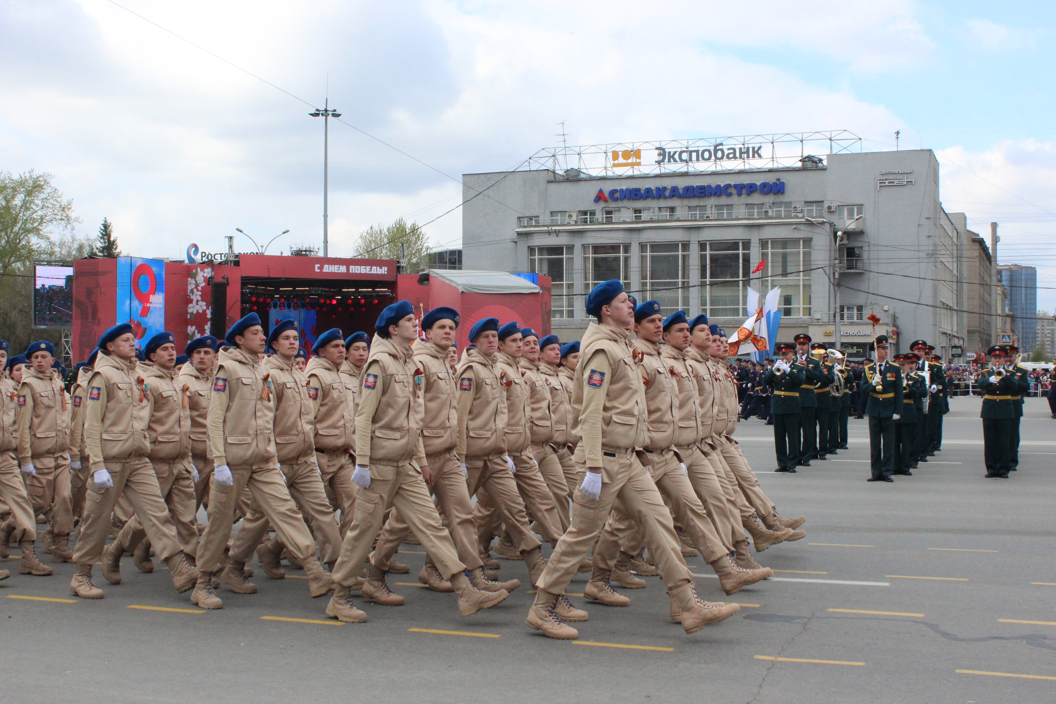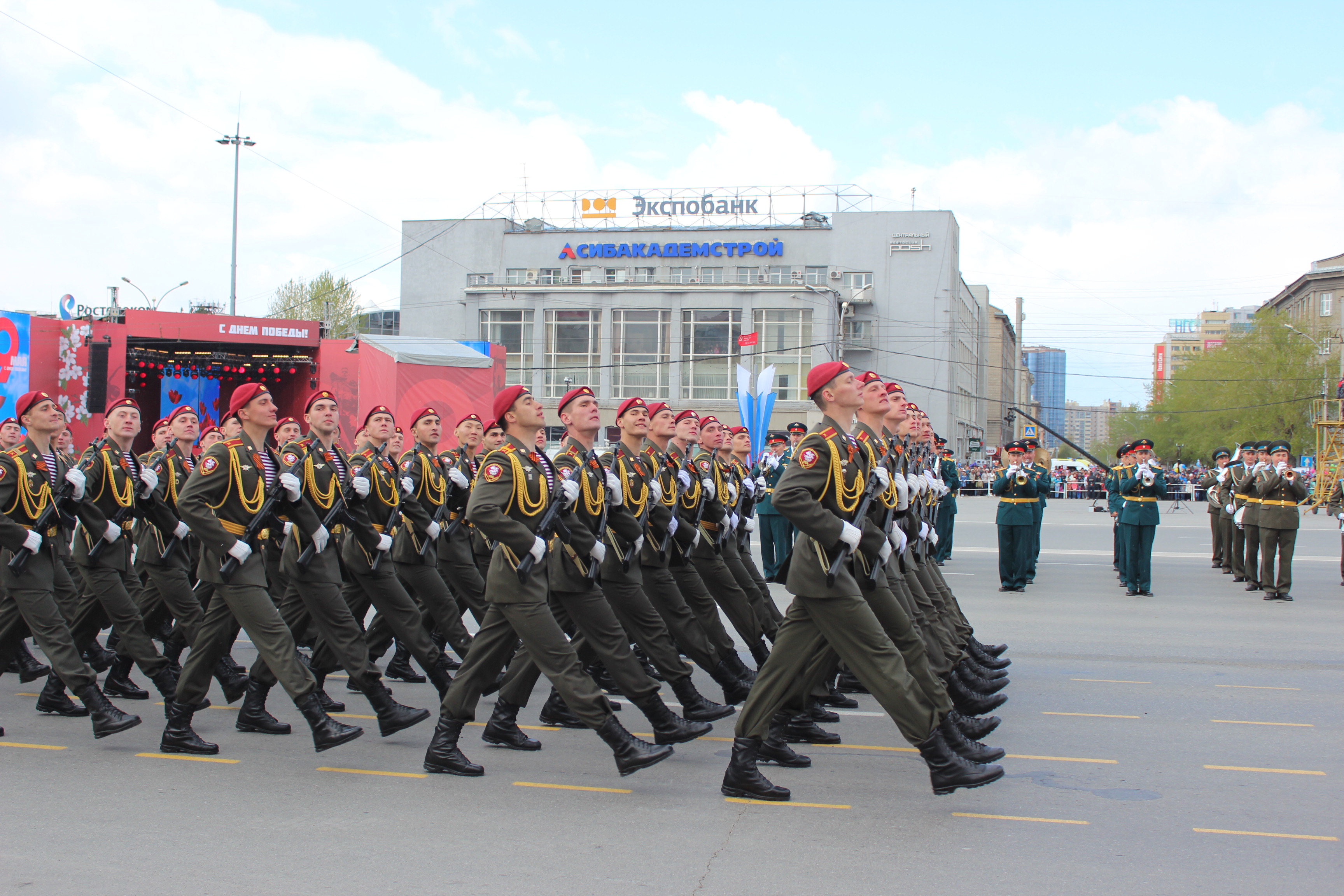 Сегодня в г. Новосибирске состоялись праздничные мероприятия, посвященные 72-летию Победы в Великой Отечественной войне. По главной площади города прошли солдаты, курсанты, офицеры вооруженных сил – всего более 1,6 тысячи человек. Впервые в параде войск Сибирского гарнизона приняли участие представители военно-патриотического общественного движения «Юнармия» и сводная женская рота Новосибирского гарнизона.