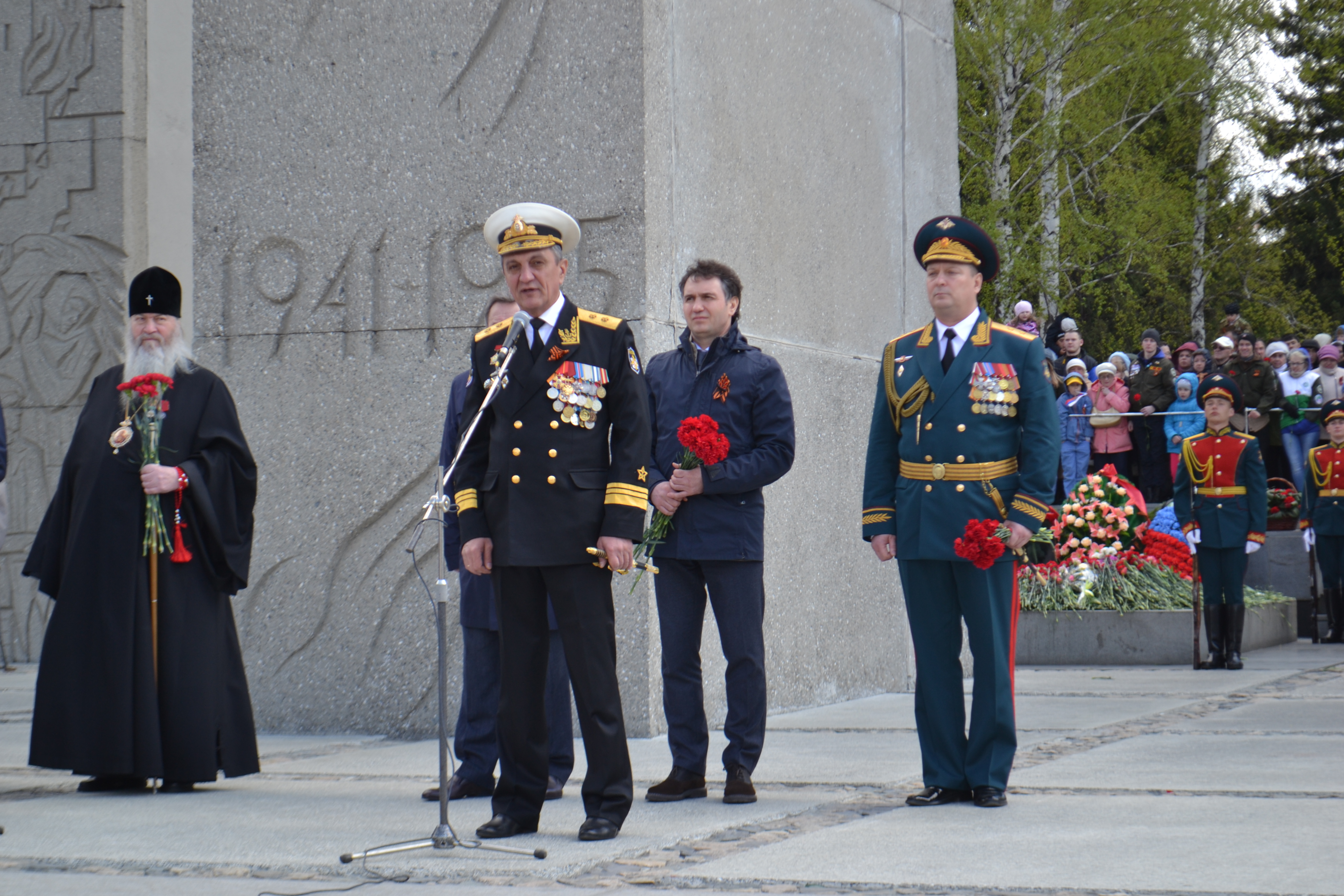 На мемориальном комплексе «Монумент Славы» прошёл торжественный митинг и возложение венков к Вечному огню. Полпред еще раз отметил, что независимо от того, сколько десятилетий будет отделять нас от 9 мая 1945 года, важно помнить высокую цену, которую советский народ заплатил за эту Победу, и хранить вечную память о тех, кто не вернулся с войны и тех, кто не дожил до 72-й годовщины её окончания.