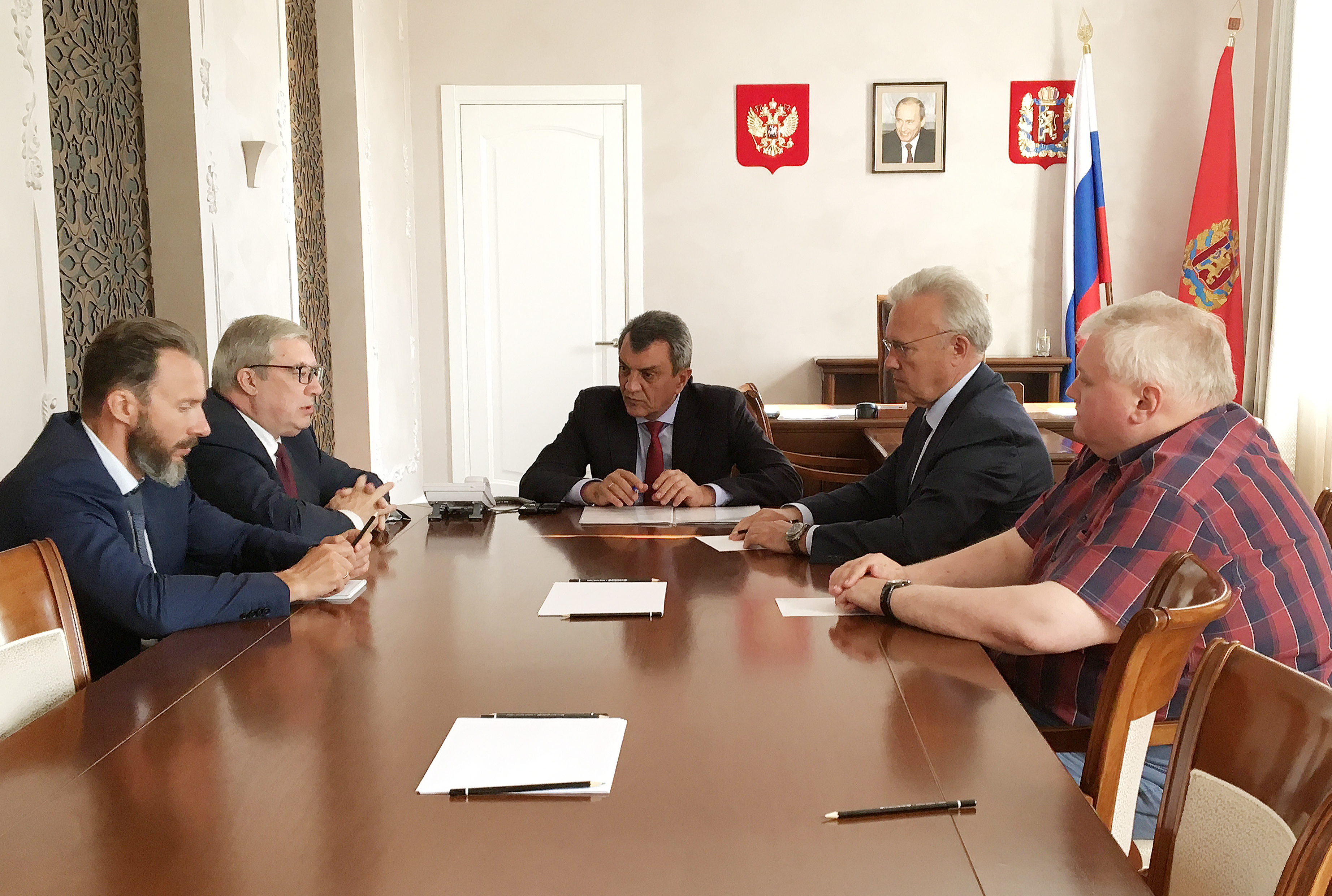 В ходе рабочей поездки в Красноярский край полномочный представитель обсудил актуальные социально-экономические вопросы с руководителями исполнительной и законодательной ветвей власти региона. В частности, особое внимание было уделено мерам, направленным на восстановление прав граждан-участников долевого строительства, вопросам переселения из ветхого и аварийного жилья, ходу подготовки к Универсиаде 2019 года. Кроме того, полпред провёл традиционное совещание с руководителями правоохранительных органов края.