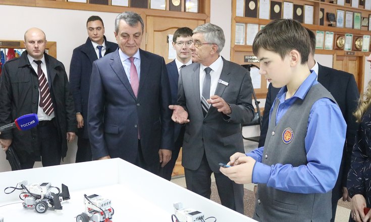 В ходе посещения лицея полномочный представитель принял участие в открытии фестиваля научно-технического творчества и технологических инициатив. Сергею Меняйло были представлены проекты учащихся инженерных и математических специализированных классов. По словам полпреда, углубленное изучение математики, физики и информатики даёт неоспоримое преимущество при поступлении в вузы. Важно понимать, что сегодня инженерные профессии очень нужны нашей стране, добавил он.