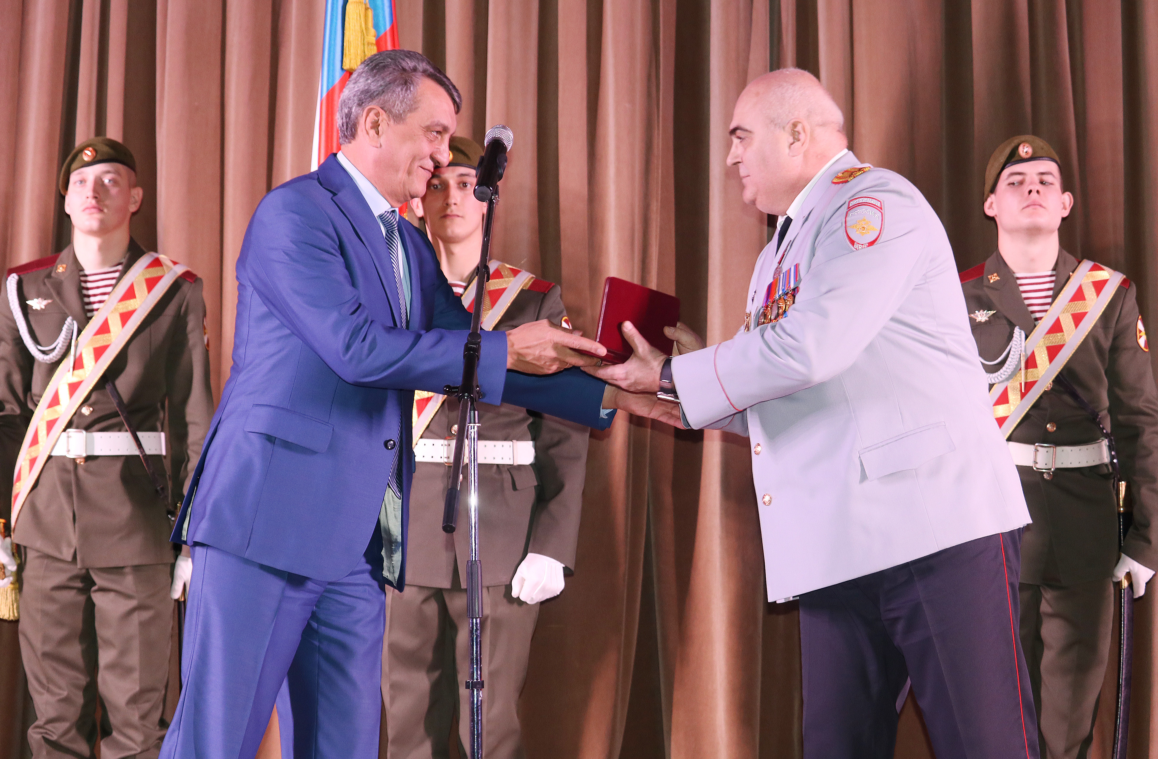 Как отметил полпред, отечественная история знает немало примеров мужества и героизма бойцов правопорядка. Полицейские находятся на переднем крае борьбы с преступностью и рискуют жизнью, исполняя служебный долг. Так, в годы Великой Отечественной войны сотрудники органов внутренних дел на транспорте героически воевали на фронтах, в тылу принимали активное участие в эвакуации людей, предприятий, материальных и культурных ценностей. Кроме того, российские милиционеры достойно выполнили поставленные служебные задачи в Афганистане и на Северном Кавказе.
