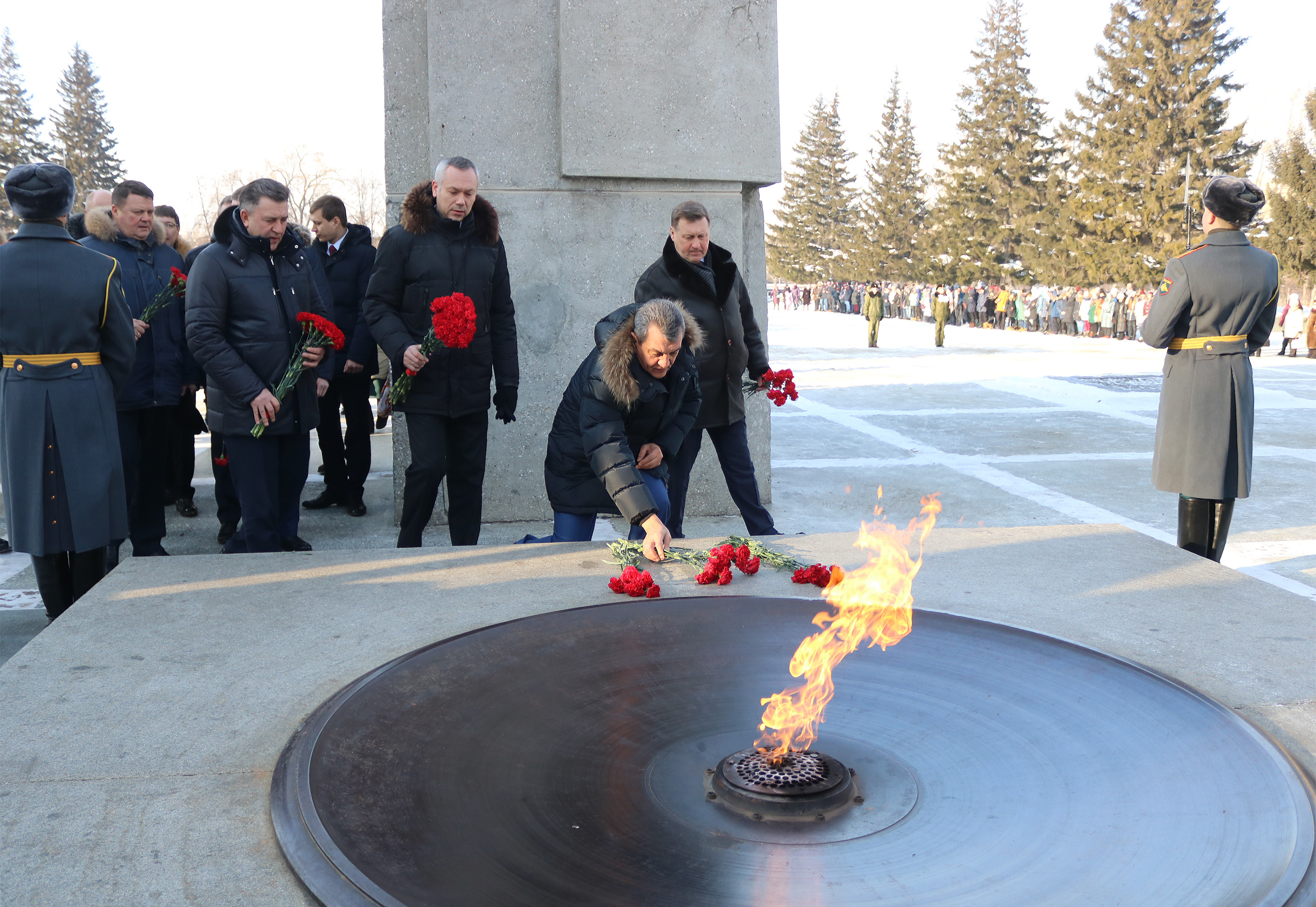 Также в рамках участия в торжественных мероприятиях, посвящённых 75-й годовщине победы в Сталинградской битве, Сергей Меняйло возложил цветы к Вечному огню на Мемориальном ансамбле «Монумент Славы». В церемонии, приуроченной к памятной дате, приняли участие руководители Новосибирской области и г. Новосибирска, представители ветеранских и молодежных организаций.