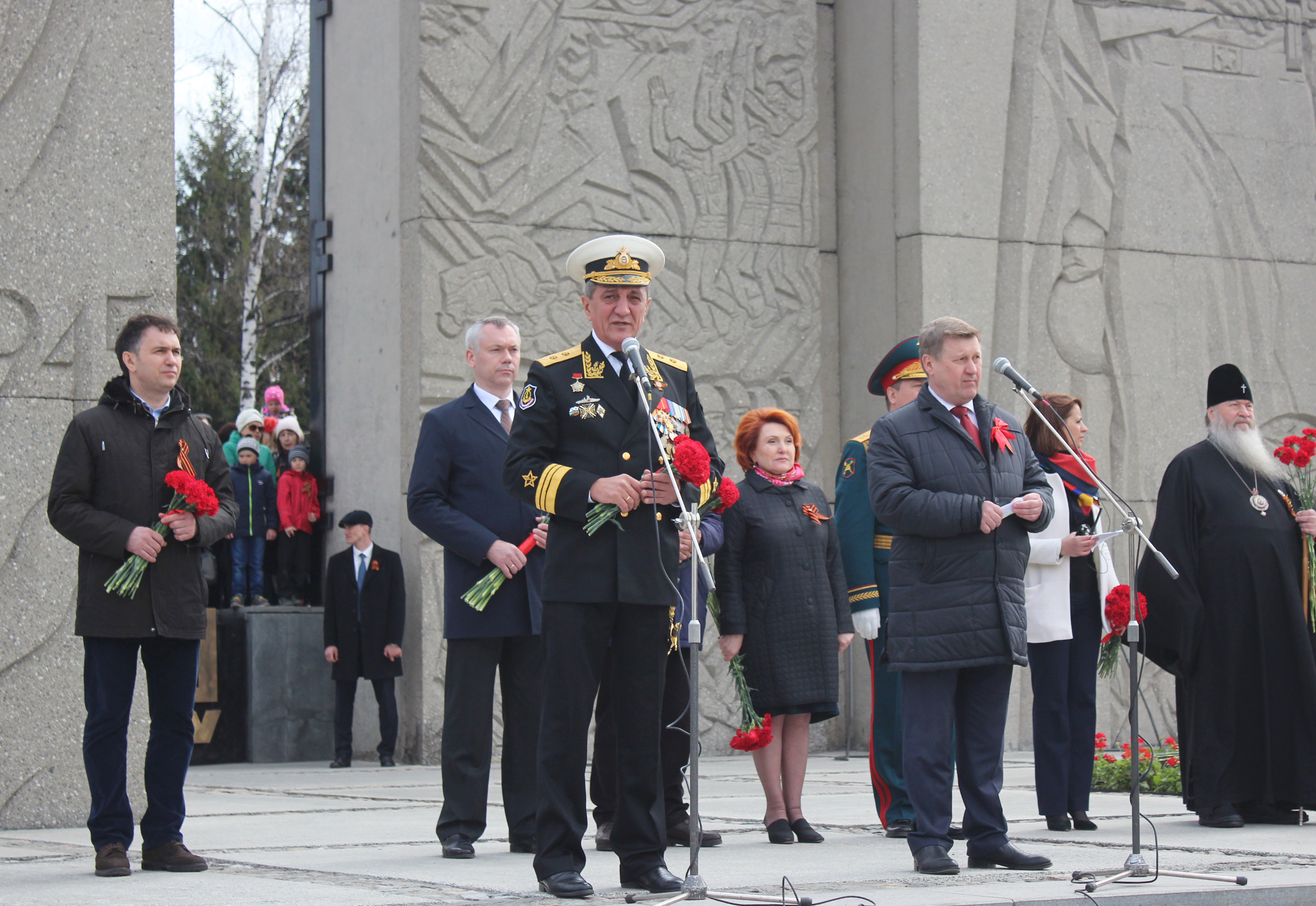На мемориальном комплексе «Монумент Славы» у Вечного огня состоялся торжественный митинг. Полпред подчеркнул: «Победа в Великой Отечественной войне для нашей страны – это событие, которое навсегда останется в отечественной истории как день национального триумфа, наполненный воспоминаниями о тех тяготах и горестях, которые пережил наш народ».